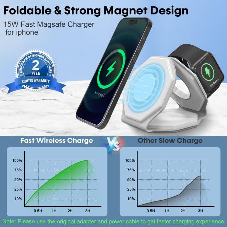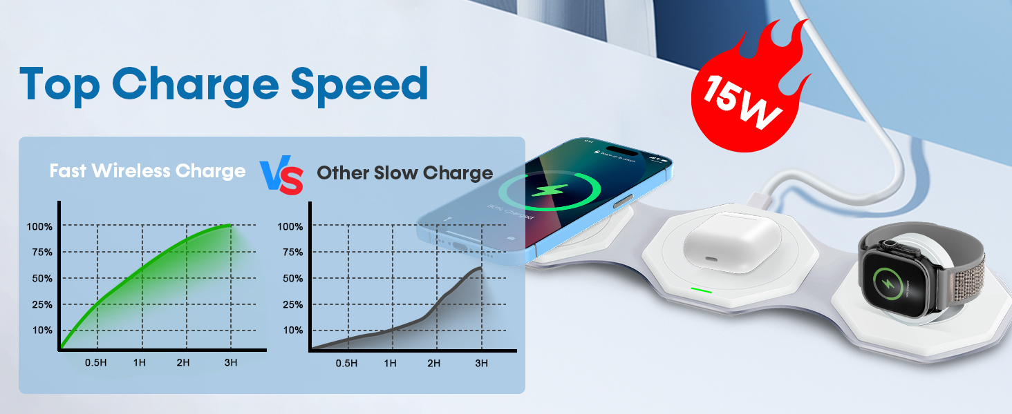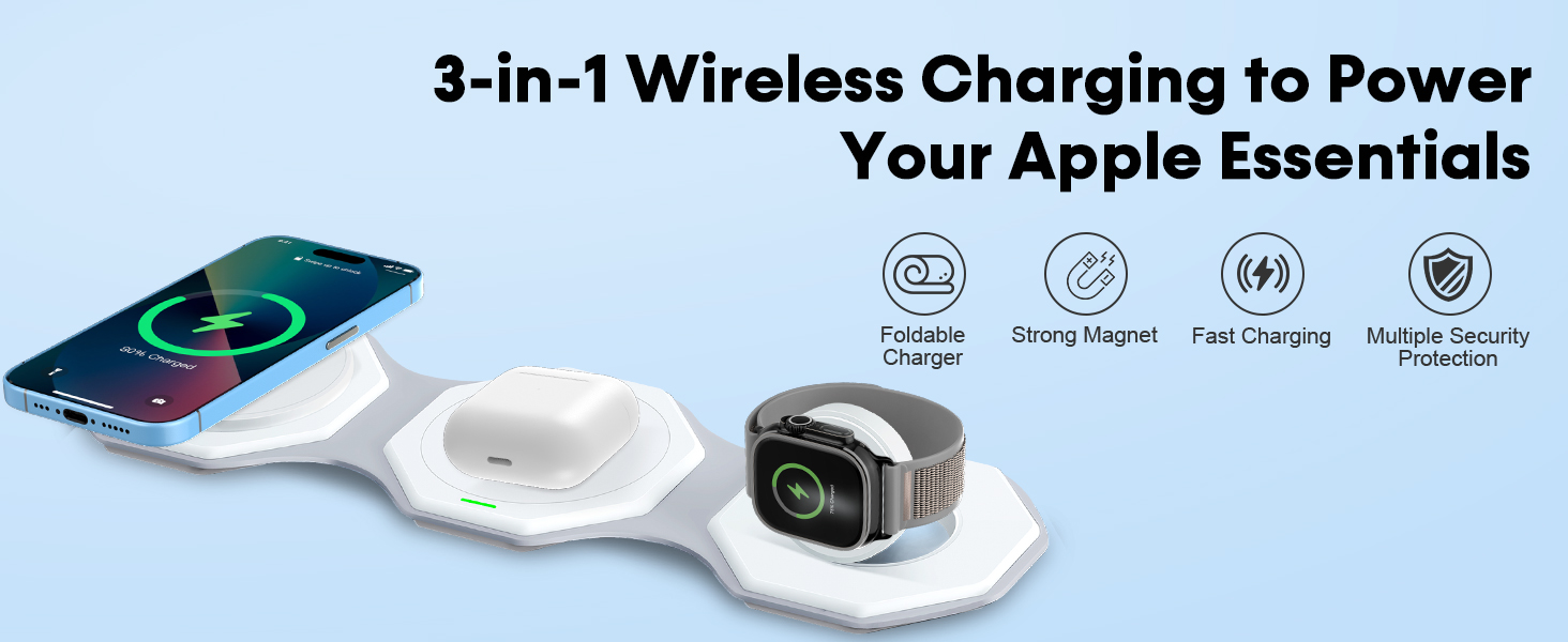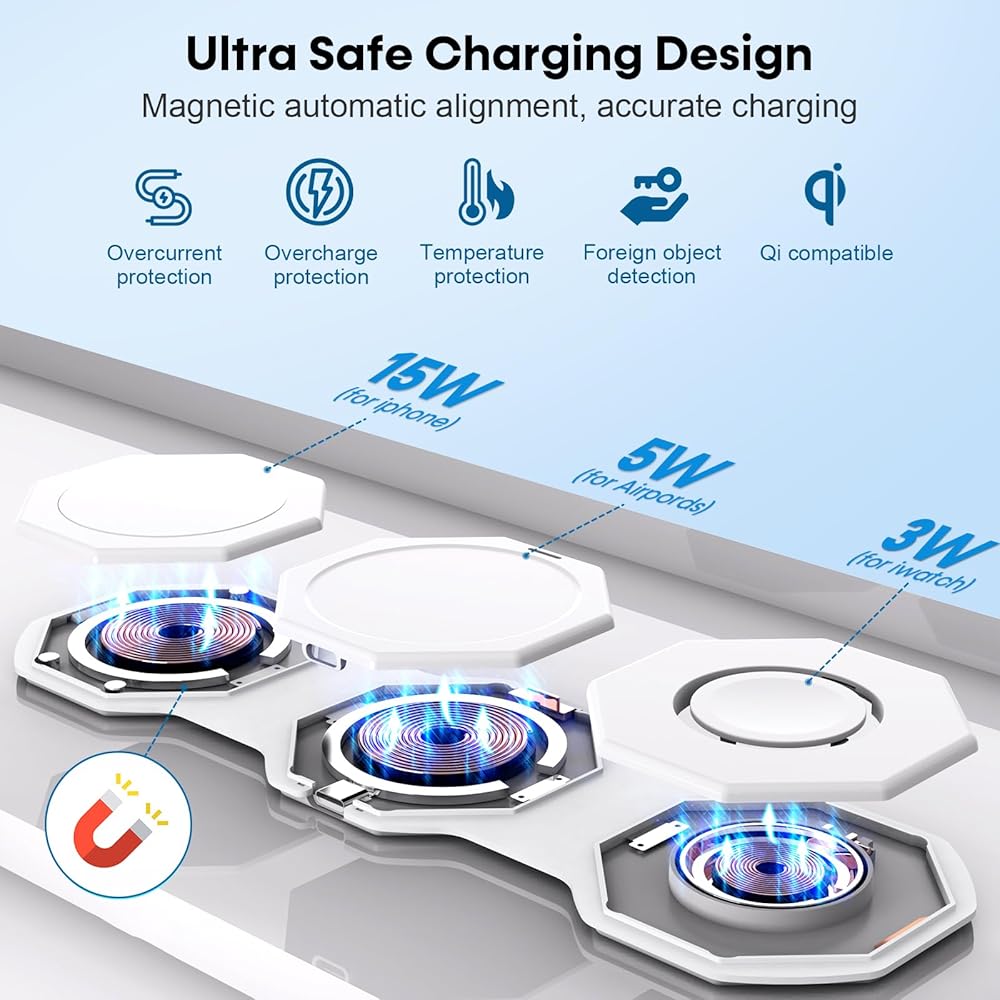 [شاحن iPhone محمول للسفر] هذا الشاحن اللاسلكي للسفر لأجهزة متعددة خفيف الوزن وصغير الحجم، ويمكن وضعه بسهولة في جيبك أو حقيبتك أو حقيبتك، مما يوفر تجربة شحن مستقرة وسريعة. شاحن لاسلكي قابل للطي 180 درجة 3 في 1 أيضًا كحامل للهاتف، مما يسمح لك بضبطه أفقيًا أو رأسيًا لمشاهدة الأفلام أو مكالمات FaceTime.