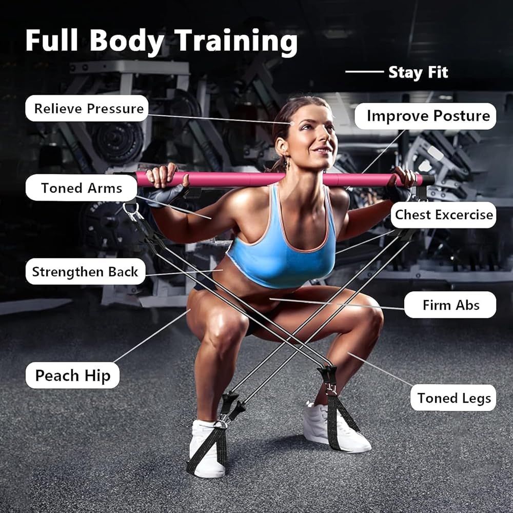 👯♀️ Fitness for Women: Use the Pilates bar and resistance bands bar for a wide range of exercises, enhancing strength and flexibility.