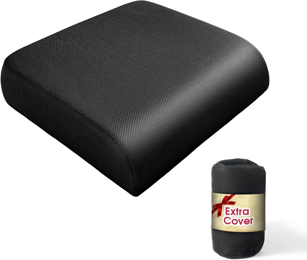 PAIN RELIEF for Back, Legs, Hips, and Sciatica: Designed to provide comfort by alleviating pressure on the lower back, waist, hips, and thighs. Our office chair cushion also helps relieve sciatica symptoms, allowing you to power through your day. Its curve design minimizes the pressure that other chair pillows can cause to improve blood circulation.4 INCH memory foam provid adequate support and comfort,suitable for people who is overweight and need seat booster.
