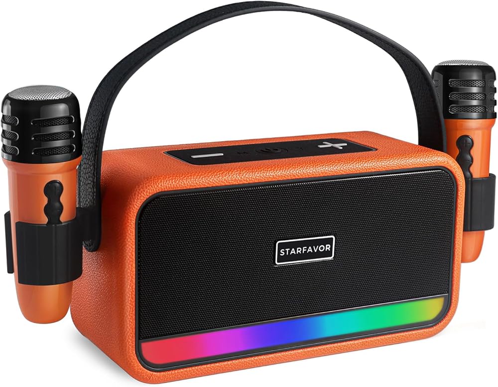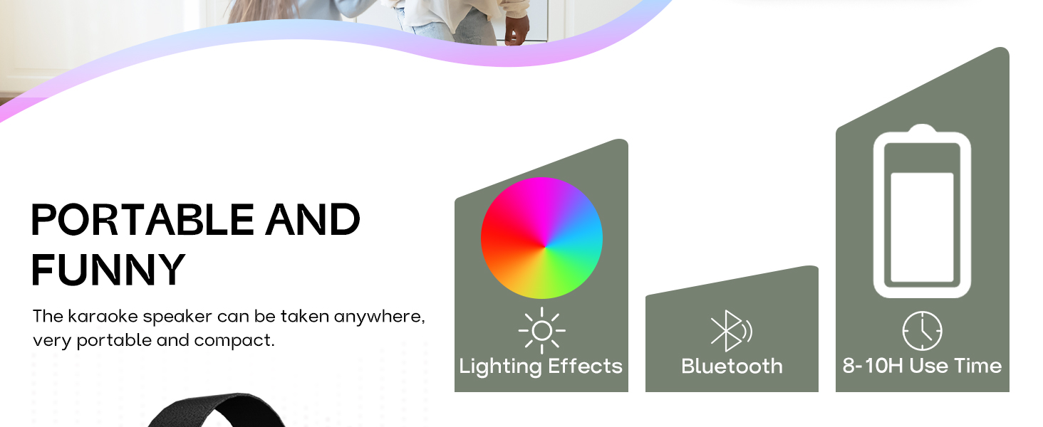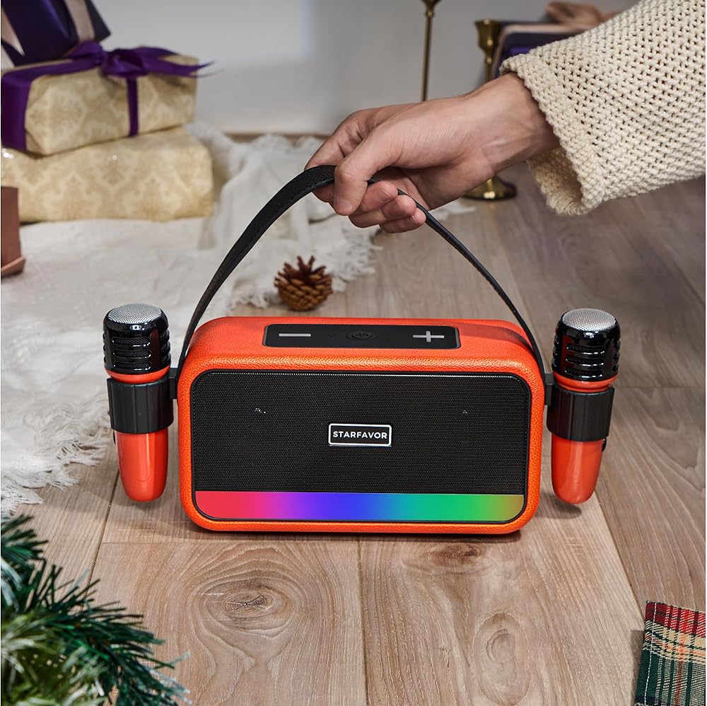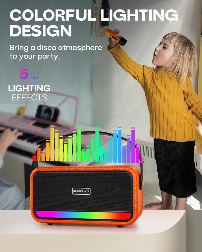 [أضواء ملونة وبطارية تدوم طويلاً] ارتقِ بأداء الكاريوكي إلى المستوى التالي من خلال خمسة تأثيرات إضاءة ديناميكية. مثالي لحفلات الكاريوكي للأطفال، يتميز مكبر الصوت ببطارية بقوة 3000 مللي أمبير في الساعة لمدة 8-10 ساعات من تشغيل الموسيقى المستمر، مما يضمن تجربة دائمة ومذهلة بصريًا.