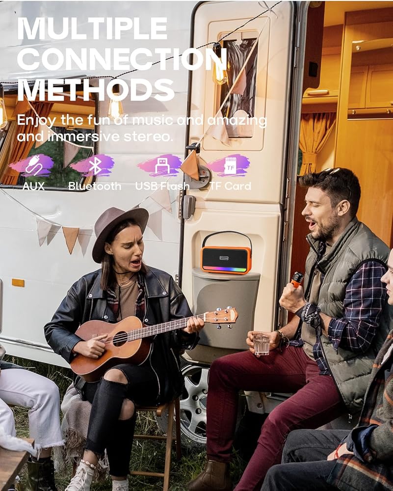 [اتصال متعدد الاستخدامات] تدعم معدات الكاريوكي هذه الإرسال اللاسلكي عبر البلوتوث وهي متوافقة مع الأجهزة المختلفة، بما في ذلك أجهزة التلفاز. قم بتوصيل آلة الكاريوكي بالتلفزيون الخاص بك للحصول على تجربة غامرة تلبي احتياجات البالغين والأطفال على حد سواء. استمتع باتصال سلس مع خيارات بطاقات TF وUSB وAUX IN.