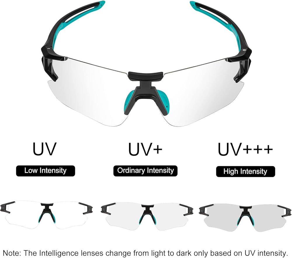 PHOTOCHROMIC TECHNOLOGY: Intelligent lens cycling sunglasses automatically lightens or darkens in response to changing light conditions without needing to switch between glasses. Frameless construction giving you more clear peripheral vision to avoid the frame blocking your view