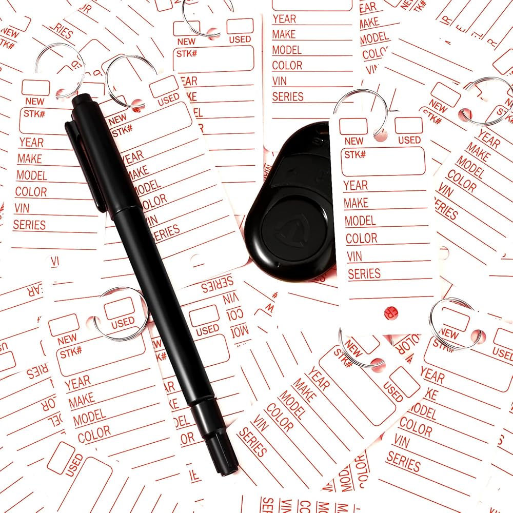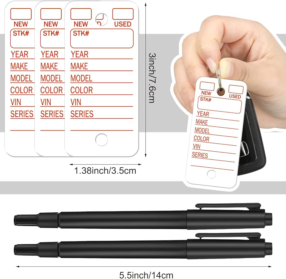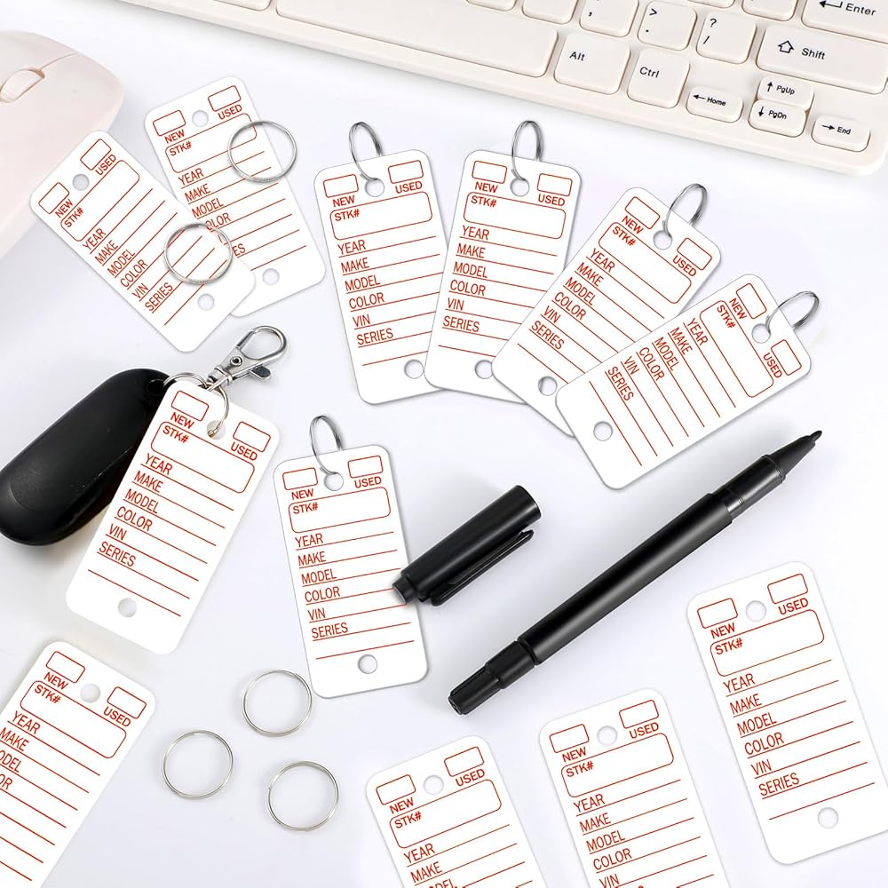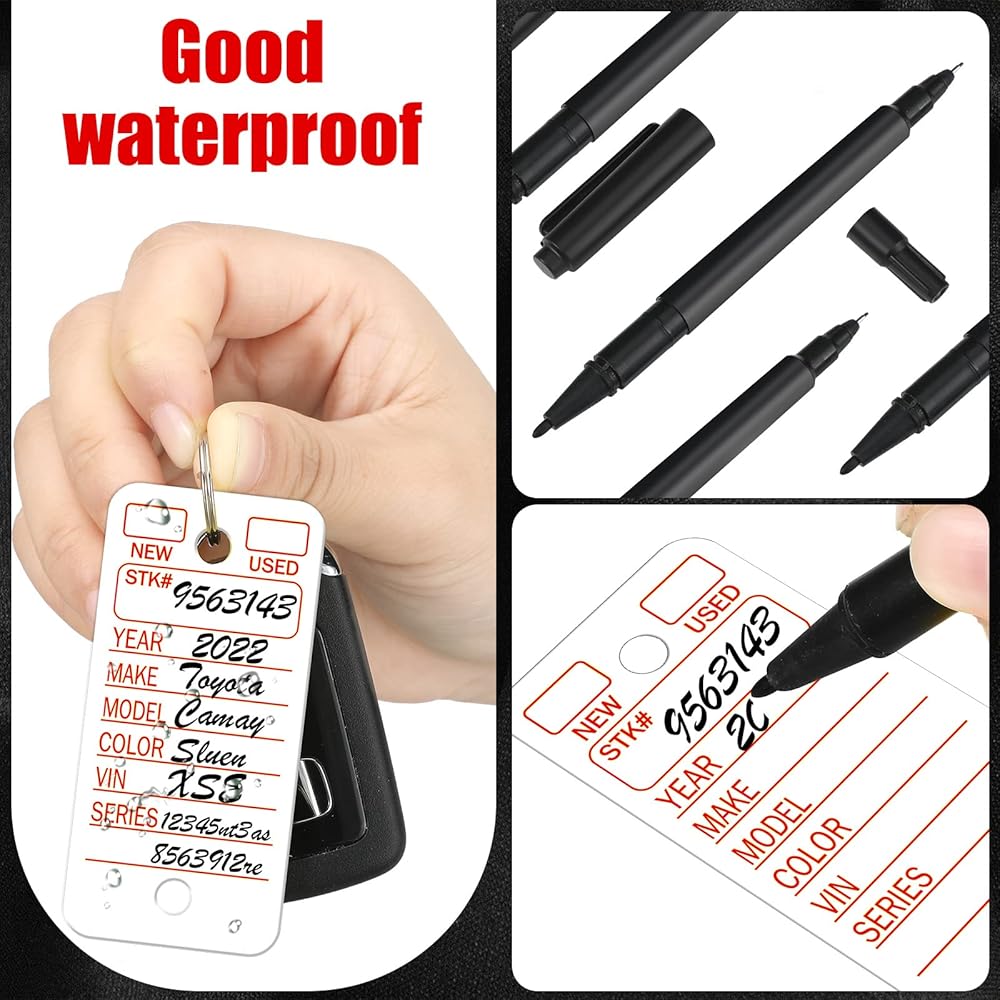 Sturdy to Use: our car tags for keys are made of quality PVC material, sturdy enough to use, and each one is predrilled holes in advance for easy hanging, which will be a practical tool for you, and our marker pen can also be applied at both ends