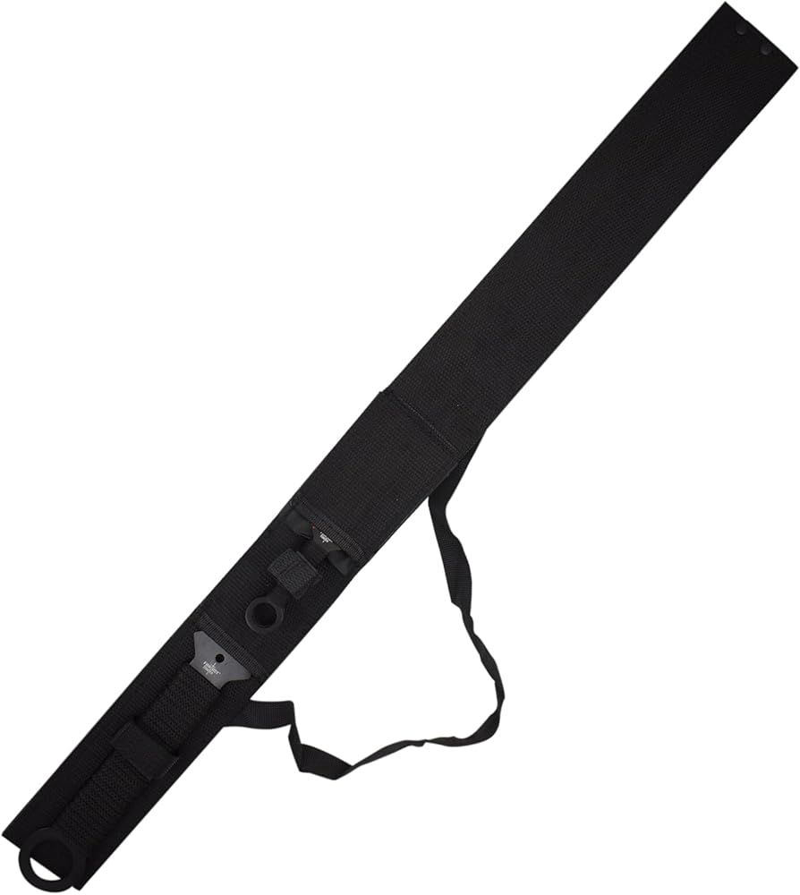 SPECIAL FEATURES: Black and satin finish stainless steel tanto blades with black cord wrapped handles. Set includes sword and 2 throwing knives. Full tang construction. Includes black nylon sheath for easy and safe carry.