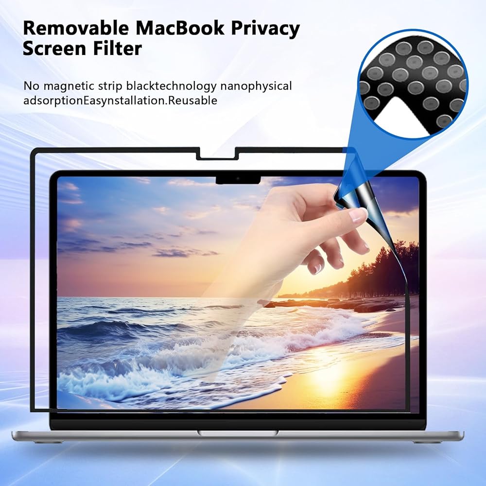 NEW DESIGN - EASY INSTALLATION: MacBook Air 15 inch Privacy Screen. No plastic tabs or tape are needed to hold the laptop peek-a-boo screen in place, making it easy and quick to install the product seamlessly without air bubbles or any sticky residue left by other installation methods, and you can install or remove it as needed, giving you a great buying experience.