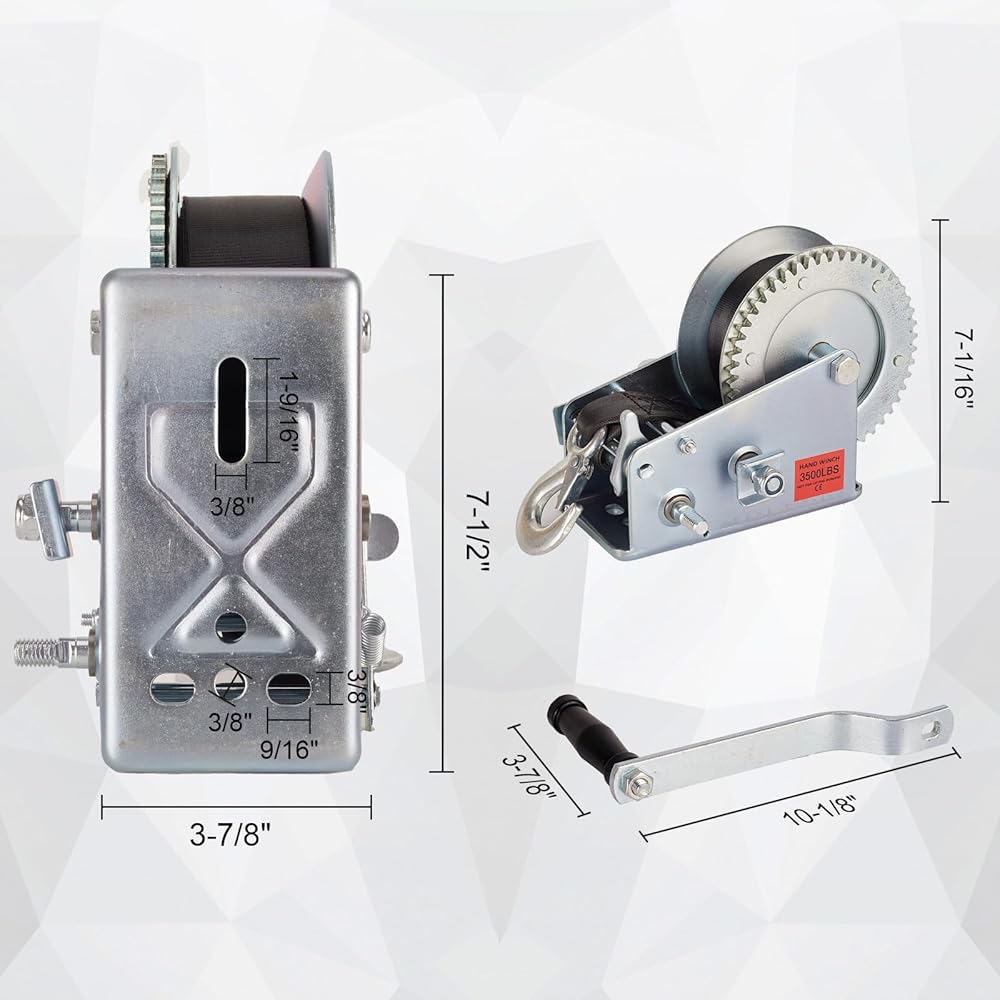 Trailer Boat Winch - 3500 lbs Hand Crank Winch with 26 ft Polyester Strap, Crank Trailer Winch with Heavy Duty Hook for Boat Trailer Towing RV ATV Truck