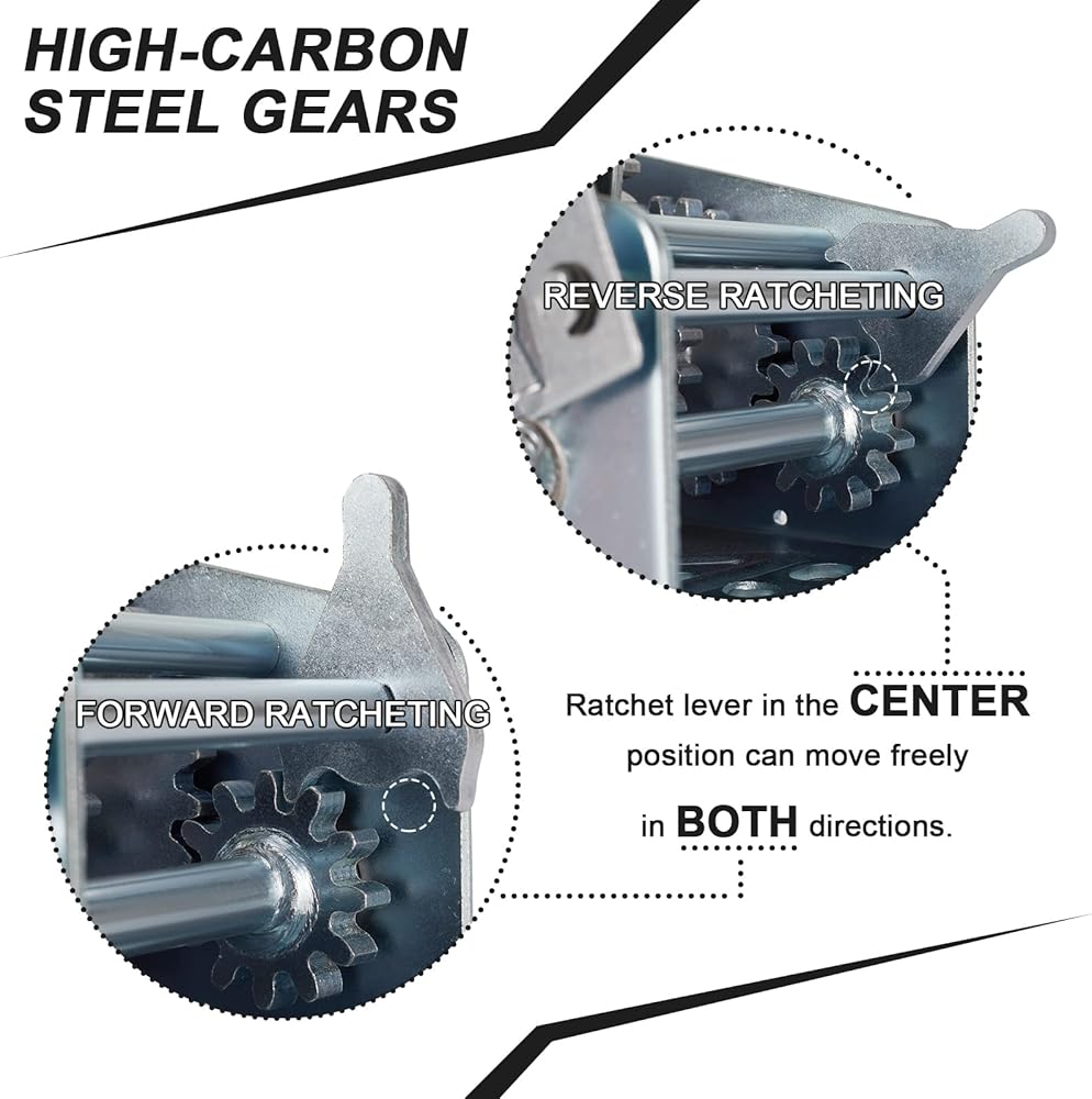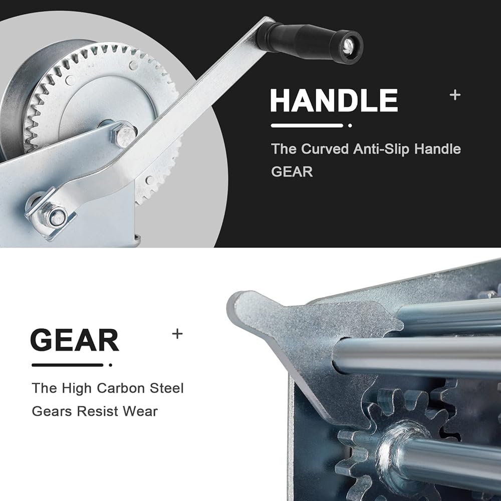 Durable and Corrosion-Resistant: The hand winch is designed to be durable and corrosion-resistant, thanks to its high carbon steel gears. With a gear ratio of 4:1, the winch reduces the labor output required and increases traction, allowing for effortless lifting and improved efficiency.