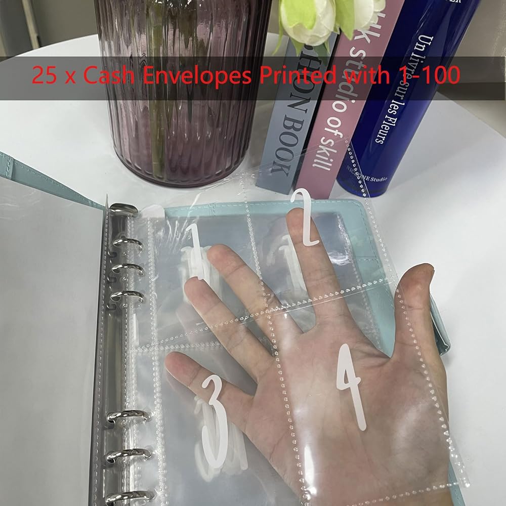 【EASY TO CARRY AND USE】The A5 size cash binder is the right size for you to take it anywhere. The transparent inner volume consists of 25 pages. There are 4 card slots on each page, a total of 100 card slots. This is a great budget binder that provides ample space for your financial records.