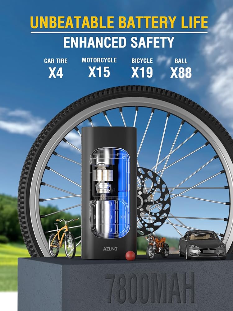 【Our Commitment】: We firmly believe in the superior and high-grade nature of our products. Your contentment holds paramount significance to us here at AZUNO. Enjoy a risk-free acquisition coupled with a lifelong warranty for our electric bike pump. Should your AZUNO air pump for bike fall short of your anticipations, return it for an absolute 100% refund encompassing your purchase cost or reach out to us for an instant and expedited replacement.
