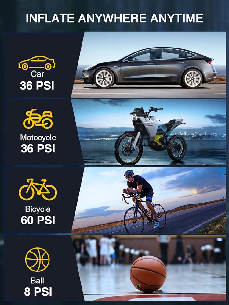 【Robust and Multifunctional】: Our top-tier bike air pump packs a punch with universal compatibility. Whether you're inflating your bike, motorcycle, or car tires, or pumping up soccer balls, our pump effortlessly adjusts to your inflation requirements, ensuring a seamless experience.