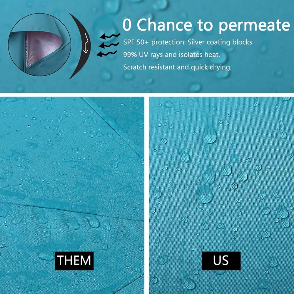 UV Protection: 190T pongee reflects and absorbs UV. Silver coating isolates UV and reflects heat to cool you down; 50+ UPF for the high protection from sun rays blocking 99.95% of sun rays.