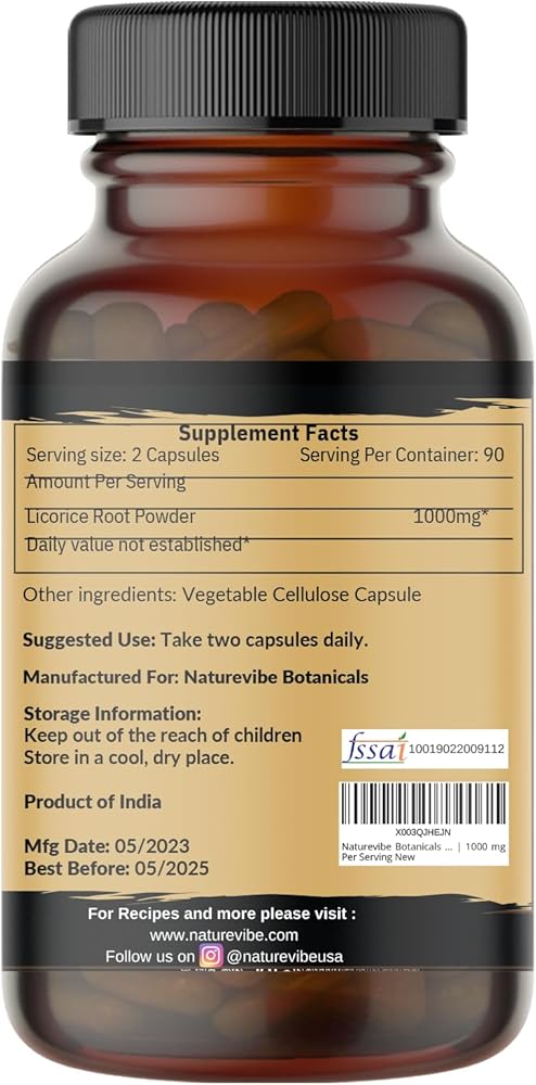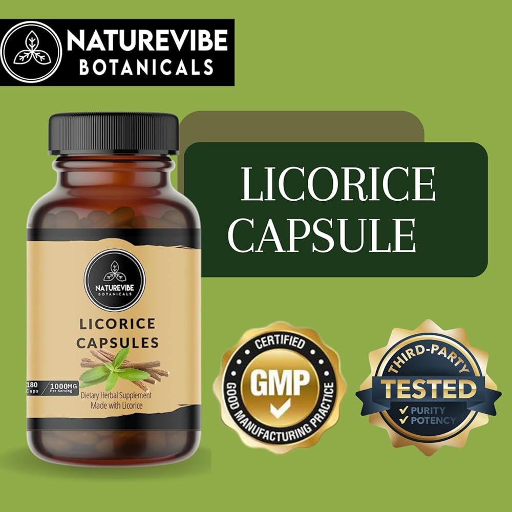 • ✅Recommended Serving Size is 2 Capsules a day and Naturevibe Botanicals Licorice Capsule which is made with pure licorice contains 1000 mg per Serving.