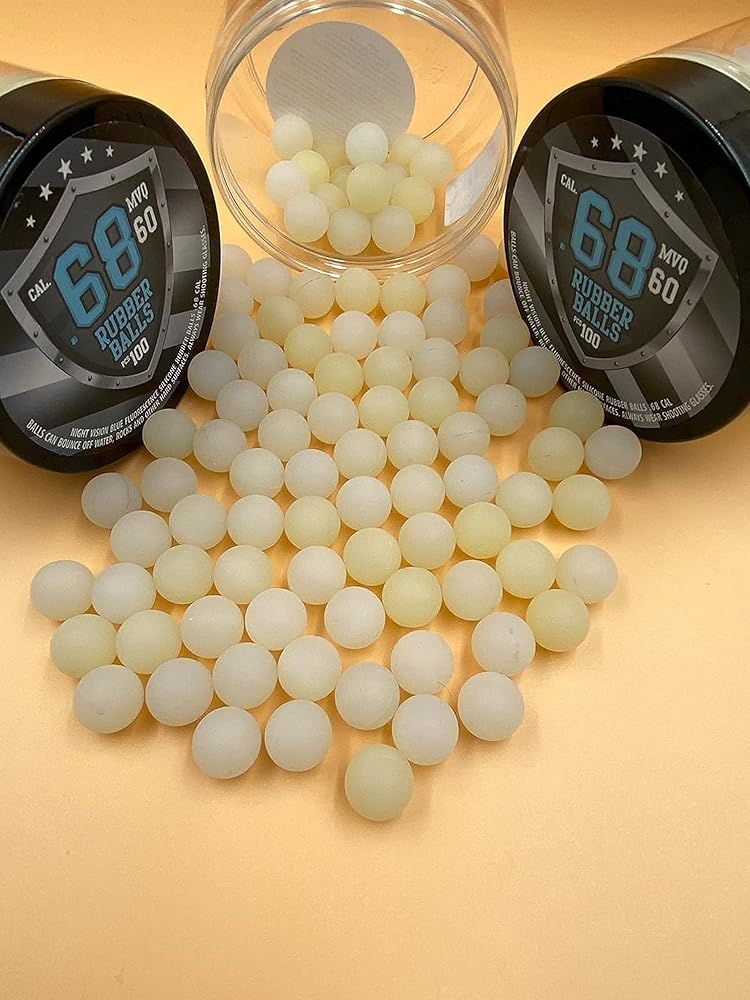 Premium Quality Silicon Rubber Balls for Training Purposes in 50 caliber. These rubber balls are designed to be used at night or in winter because they contain fluorescence which gives a special effect and amazing experience. The balls should stay for a short time under the light (for example under flash light from the smartphone). After that, as soon as you bring them into the dark, their unique blue florescent color starts to glow. Wonderful effects on playing paintball or home training. Great shooting experience thanks to the high-quality materials used in the production. Eventhough they are softer than other rubber balls in our store, these balls have also very strong effects. They can be used for home and self defense too. Article Details: Premium Quality Rubber Silicon Balls in 50 cal. (each weighs ca. 1,3 gr.) Unique Experience: The balls glow in the dark thanks to its blue fluorescence pigment. Suitable for Paintball and Self Defense Guns in 50 caliber. Made in EU Standards: High-quality materials and engineering techniques are used in the production. These balls offer special training and shooting experience. They are also ideal for slingshots.