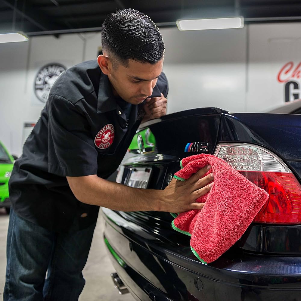 Chemical Guys Red Fluffier Miracle Supra Microfiber Towels are premium quality extra soft microfiber towels for fine detailing. Red Fluffier Miracle Supra Towels are excellent for all interior and exterior detailing applications because they are soft, durable, and scratch-free. Microfiber is the industry-standard cloth for touching and wiping cars because it is super-soft, super-absorbent, and will not scratch paint when used properly. Red Fluffier Towels are made with a premium 70/30 blend of microfiber for exceptional softness and durability, and a luxurious silk-banded edge to further reduce the chances of scratching sensitive paintwork. Every Red Fluffier Towel features one thin weave side, and one thick weave side. Use the thick pile side to wipe up and trap dust and debris and buff away detail sprays for a streak-free shine, and the thin weave side to remove cured paste waxes and sealants. When only soft, fine towels will do for sensitive detailing work, choose the Chemical Guys Red Fluffier Miracle Supra Microfiber Towel.