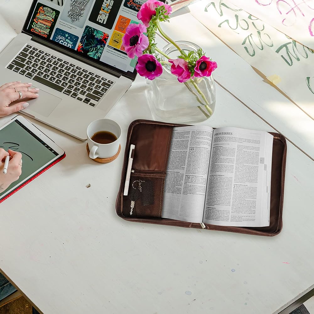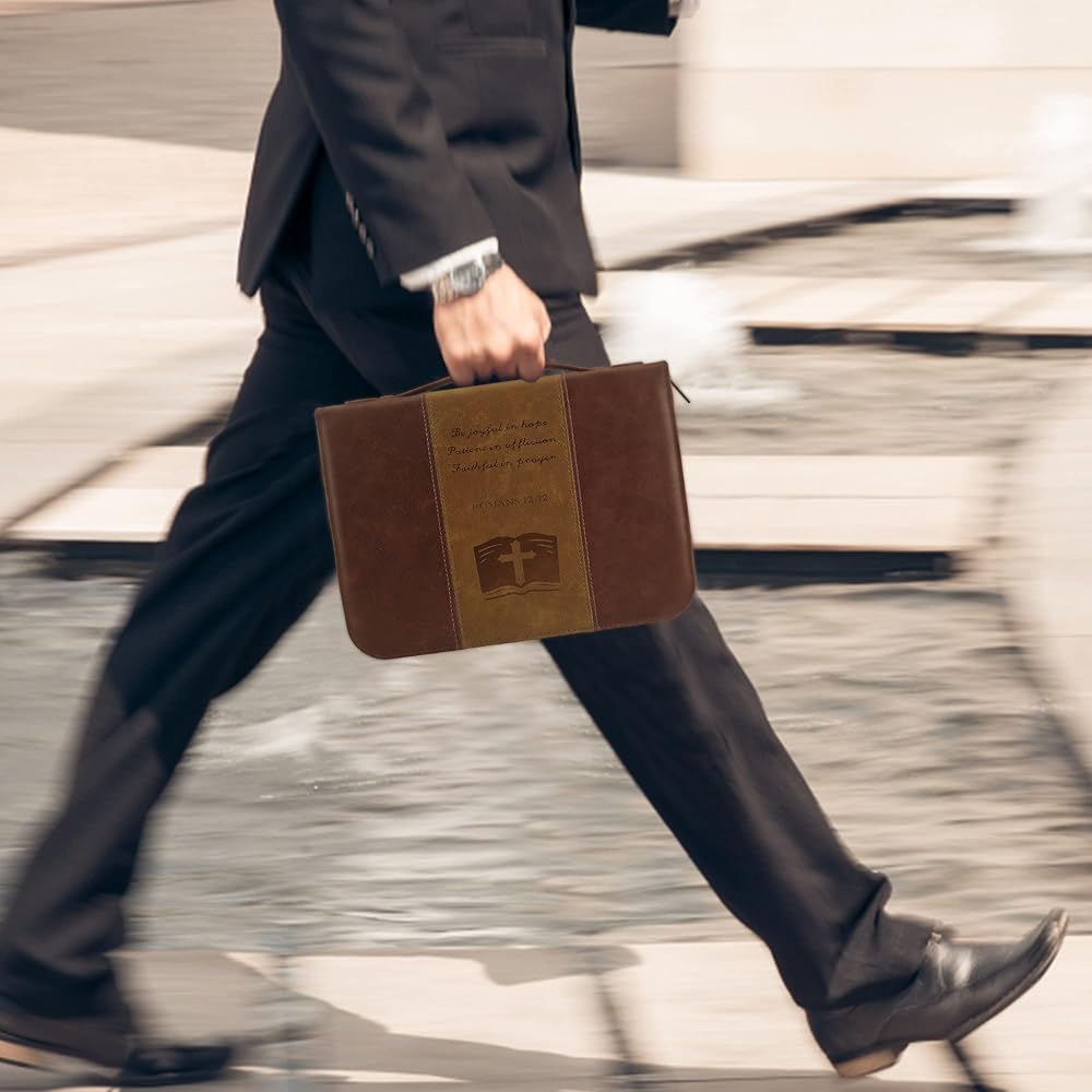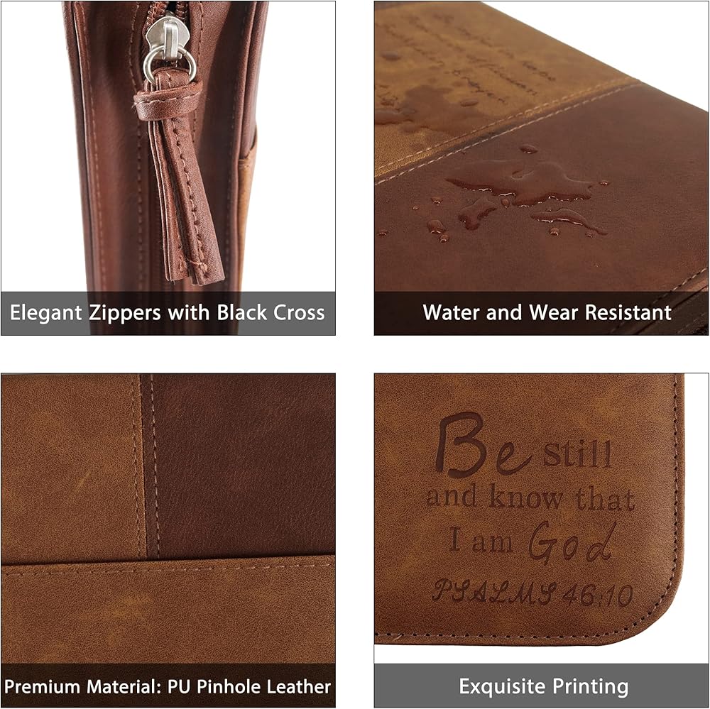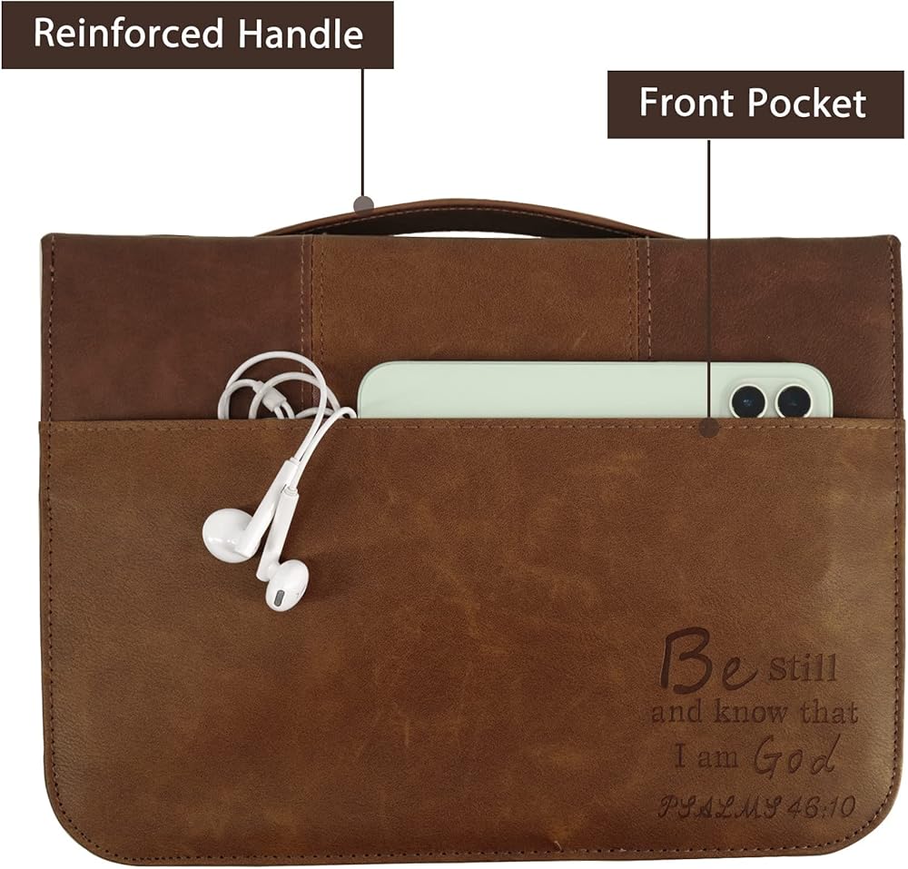 【EASY TO CARRY】: With a sturdy carrying handle on the bible cover, it is easy to carry or hold every time you need it, whether you are on the way to a church service, worship, Bible study, or on a bus.