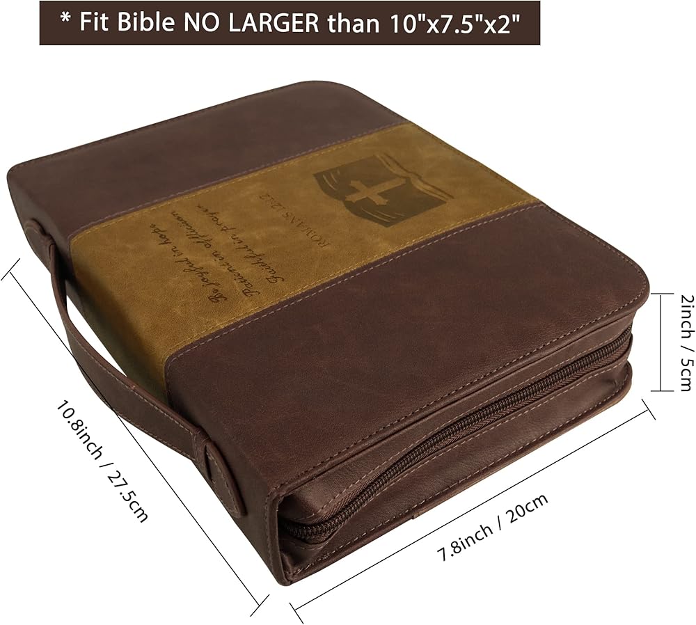 【DIMENSION】Cover fits books and bibles no larger than: 10 x 7.5 x 1.8 inches. Please measure your bible size before purcasing to avoid return. Allow extra room to avoid a too snug fit.