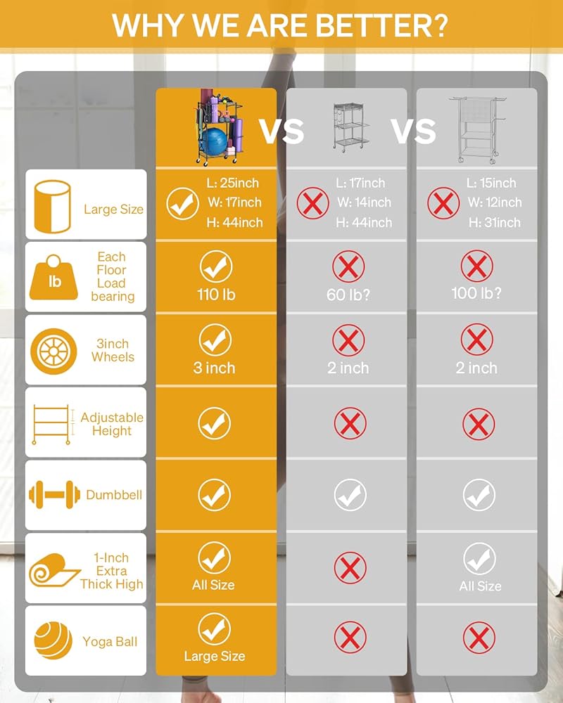 ✨【تخزين معدات صالة الألعاب الرياضية】يمكن لمنظم صالة الألعاب الرياضية هذا أن يساعد في تخزين العناصر المختلفة، مثل سجادة اليوجا، وكرات اليوجا، والدمبل، وأجراس الكيتلاب، وطوب اليوجا، وشريط المقاومة، والمناشف، والأسطوانة الإسفنجية وما إلى ذلك. مناسب للعديد من المناسبات، مثل مثل صالة الألعاب الرياضية وصالة الألعاب الرياضية المنزلية ونادي اللياقة البدنية والجراج. مثالية لمحبي تمارين اليوجا.