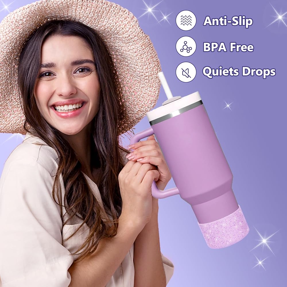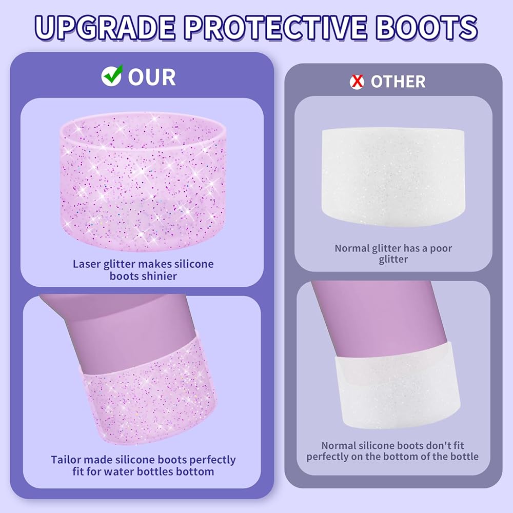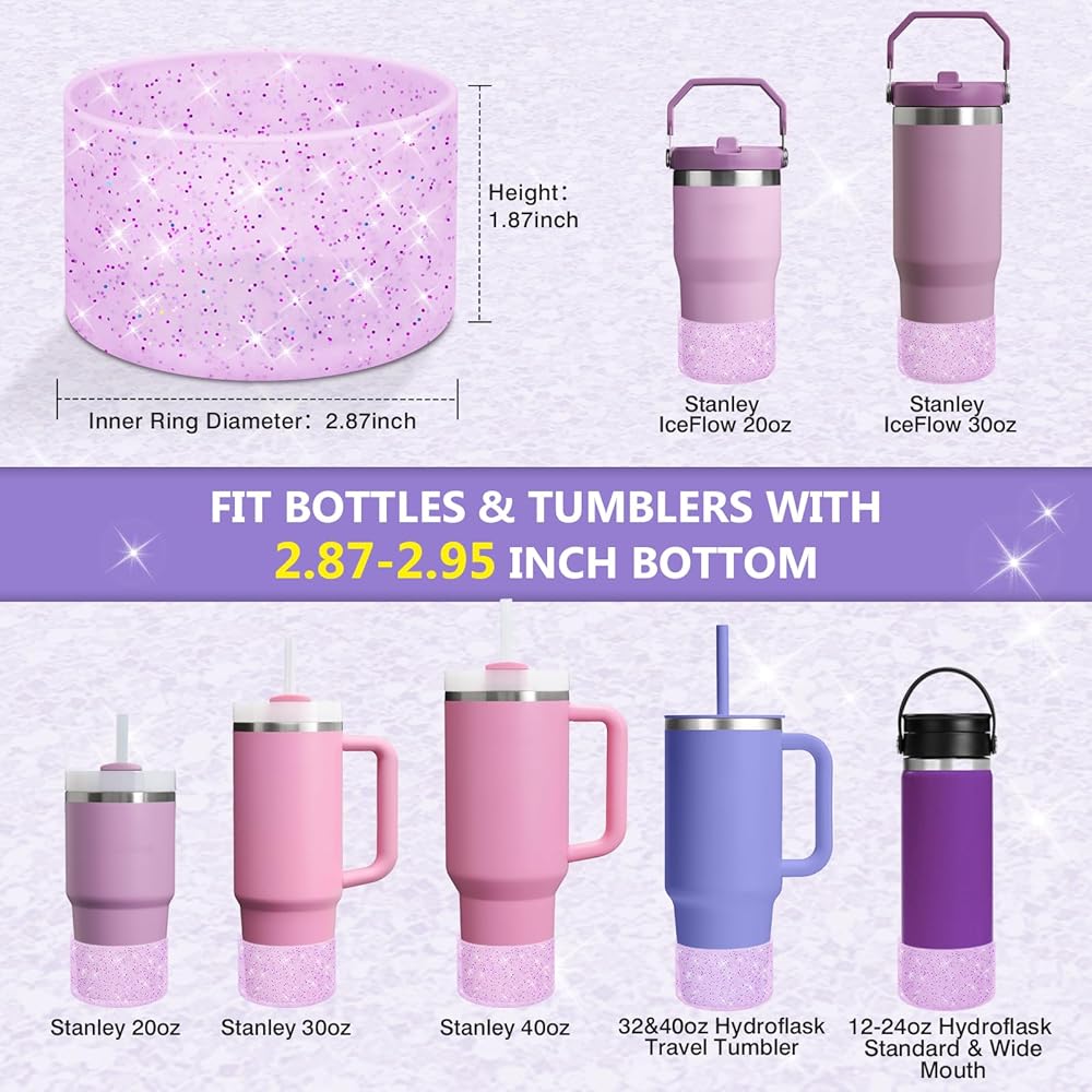 ★ UNIVERSAL COMPATIBILITY — Designed for bottles with a base diameter of 2.8-3 inches, this dazzling water bottle boot isn't just compatible with Stanley products. It is also compatible with Hydroflask 12-24 oz water bottles.
