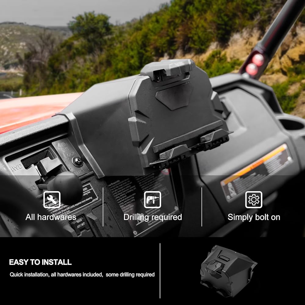 ▶ PERFECT FIT PIONEER ELECTRONIC DEVICE HOLDER WITH STORAGE BOX - Fits 2022-2023 Honda Pioneer 1000-5. Just like a factory part.