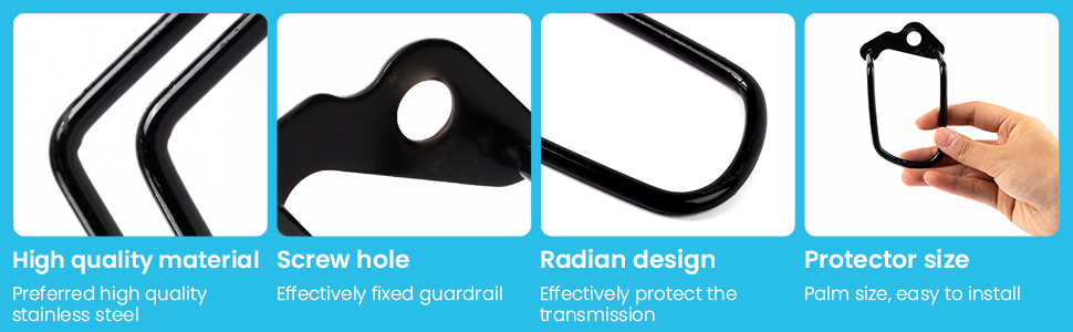 HIGH QUALITY -- The bicycle derailleur guard rack protector is made of high quality steel, anti-rust and durable, as well as can be easily installed with a single fixed hole.
