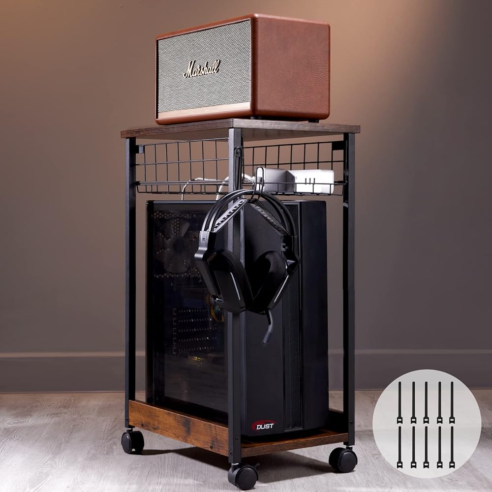 Computer Tower Stand Sturdy Durable:computer tower stand Upgraded and upgraded Alloy steel S304L,30% increase in corrosion resistance, plus 50% increase in rust resistance with glossy baking paint, computer tower stand is replaced with better materials just to improve the service life and use experience,computer floor stand wood and metal construction is sturdy,Looking forward computer tower stand bring you a good experience