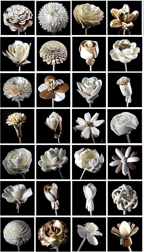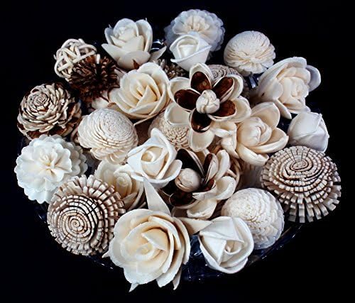Handmade of natural material Sesbania Pine and Hyacinth wood, 10 mixed difference style and size Flowers, Random from more than 30 Style, Diameter 0.5 inch - 2.0 inch