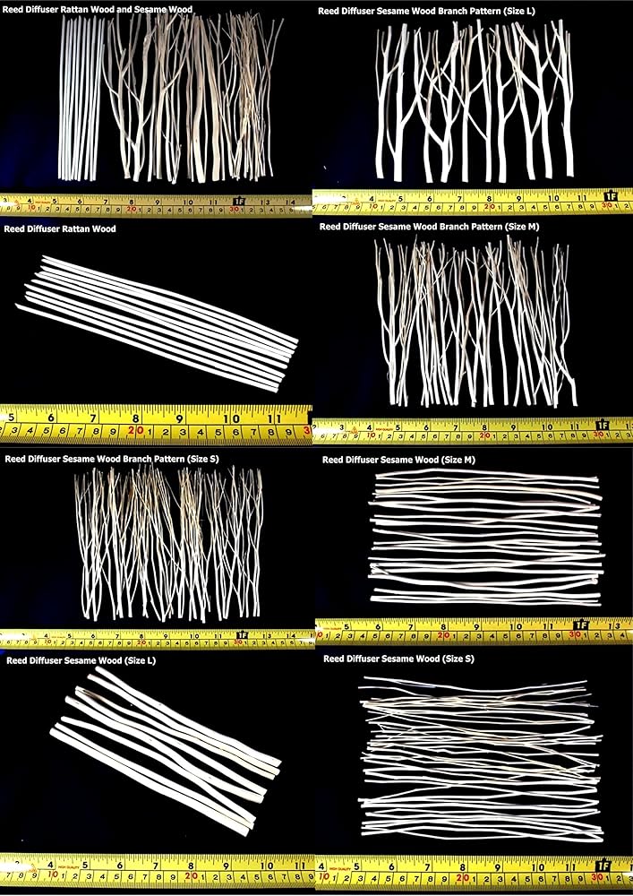 Reed diffuser mixed Rattan wood and Sesame wood, mixed rod and branch style, mixed size measures 7 inch long and 0.5 - 5.0 mm. diameter