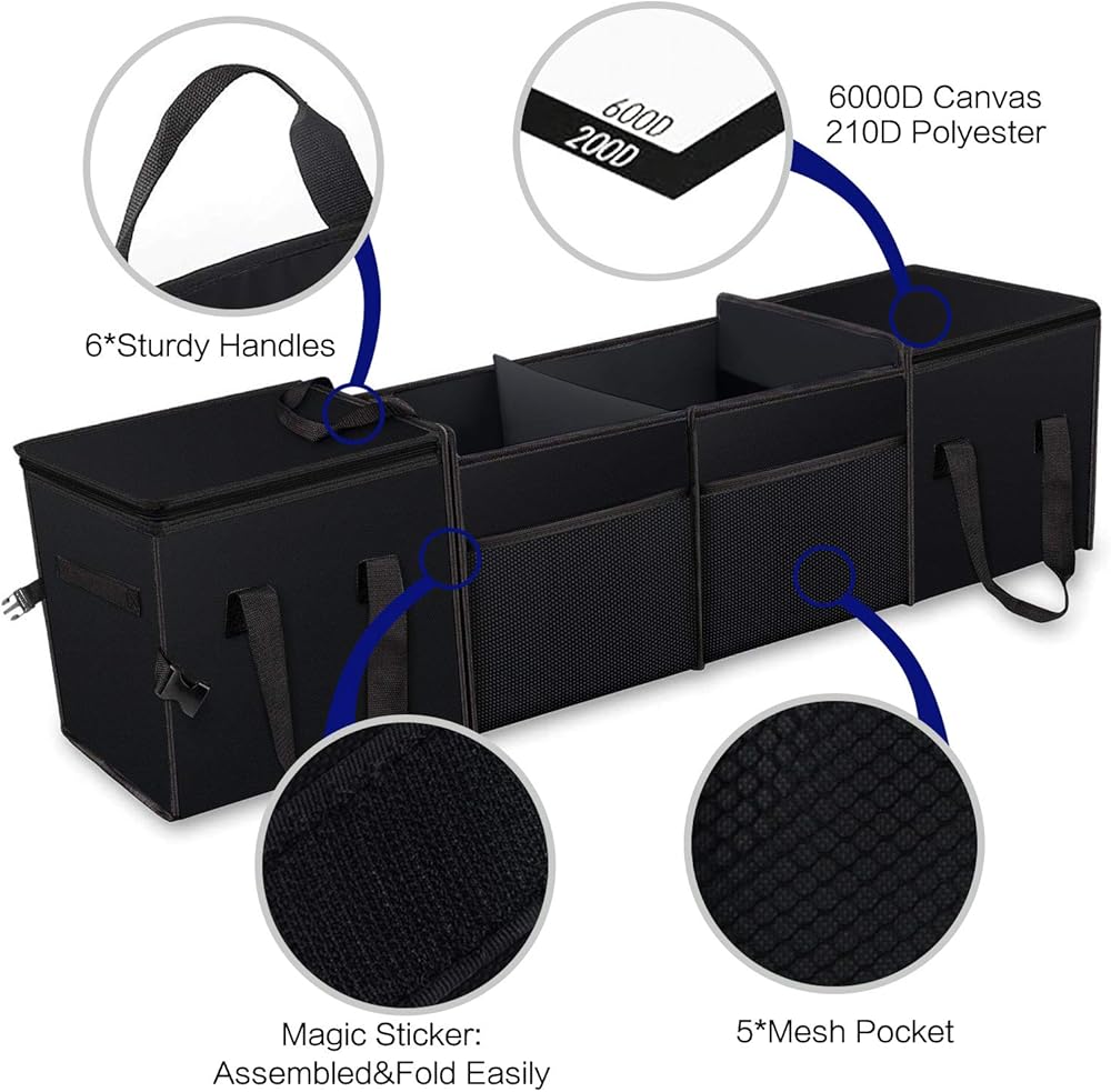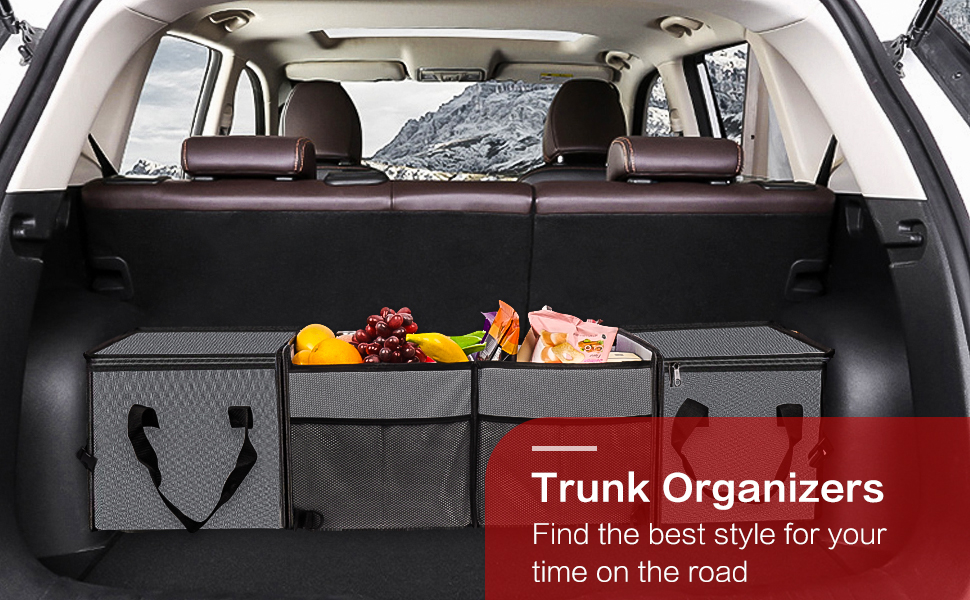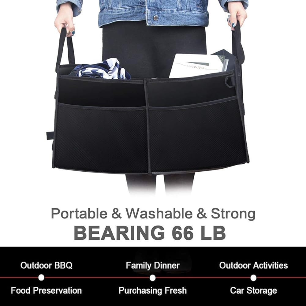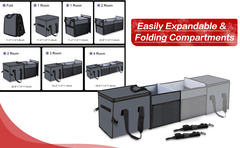 Larger Capacity Trunk Organizer-It is sized at 45.6*11.4*11.4 inch (unfolded), all capacity of 93L. It features with 4 side mesh pockets. It allow your vehicle stay organized.Perfect meeting the needs of picnic,travel,shopping,outdoor BBQ.