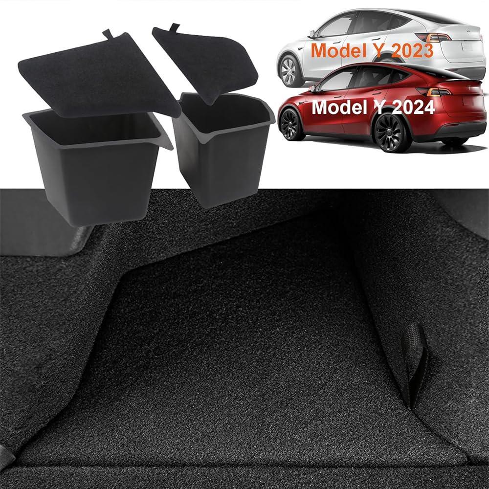 Fit 2022-2025.03 Tesla Model Y Trunk Storage Bins (Not for Model Y Juniper 2025), Side Storage Box with Lids, Rear Trunk Organizer for Tesla Model Y Accessories