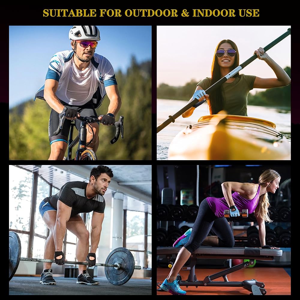 💪[Anti-Slip, Wear-Resistant & Durable] The thickened pad and anti-slip design on the palm of the workout gloves for women and men can increase friction and stability to reduce sliding and keep the apparatus in place. The gloves are made of premium wear-resistant microfiber with strong stitching, lightweight and durable. Can be used as weightlifting gloves, gym gloves, fitness gloves, training gloves grips, exercise gloves, biking gloves, rowing gloves, kayak gloves.