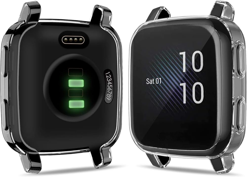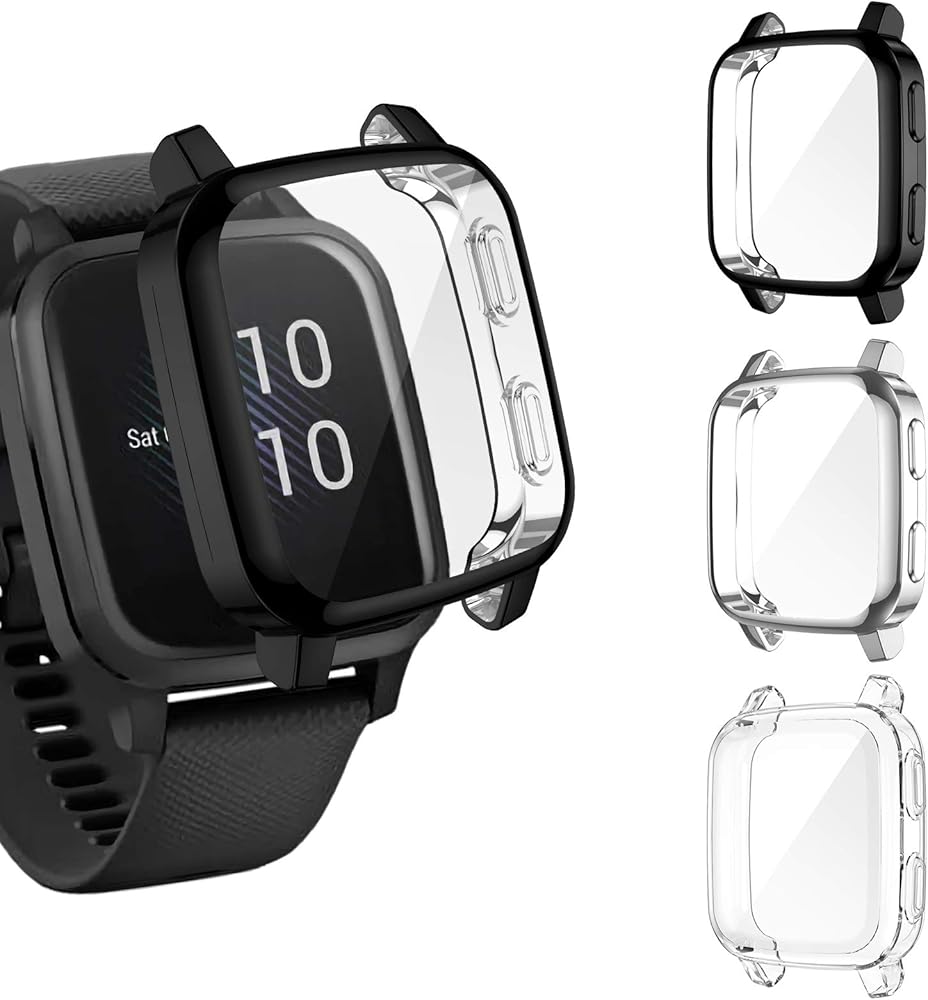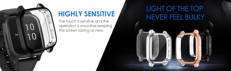 【High Touch Sensitivity & Ultra Clear】Our garmin venu sq music protector case doesn't mess the touch sensitivity. You can not even tell our screen protector case has already been on your garmin venu sq music tracker screen.