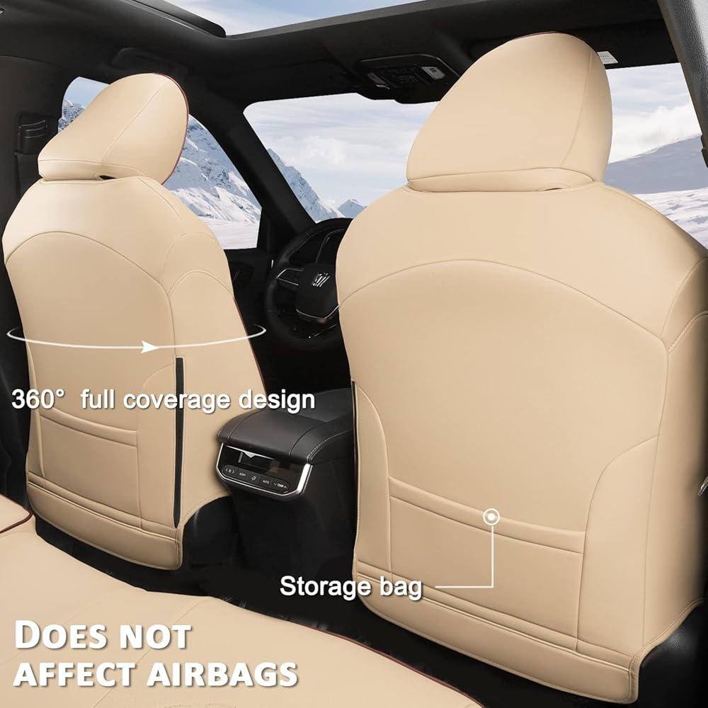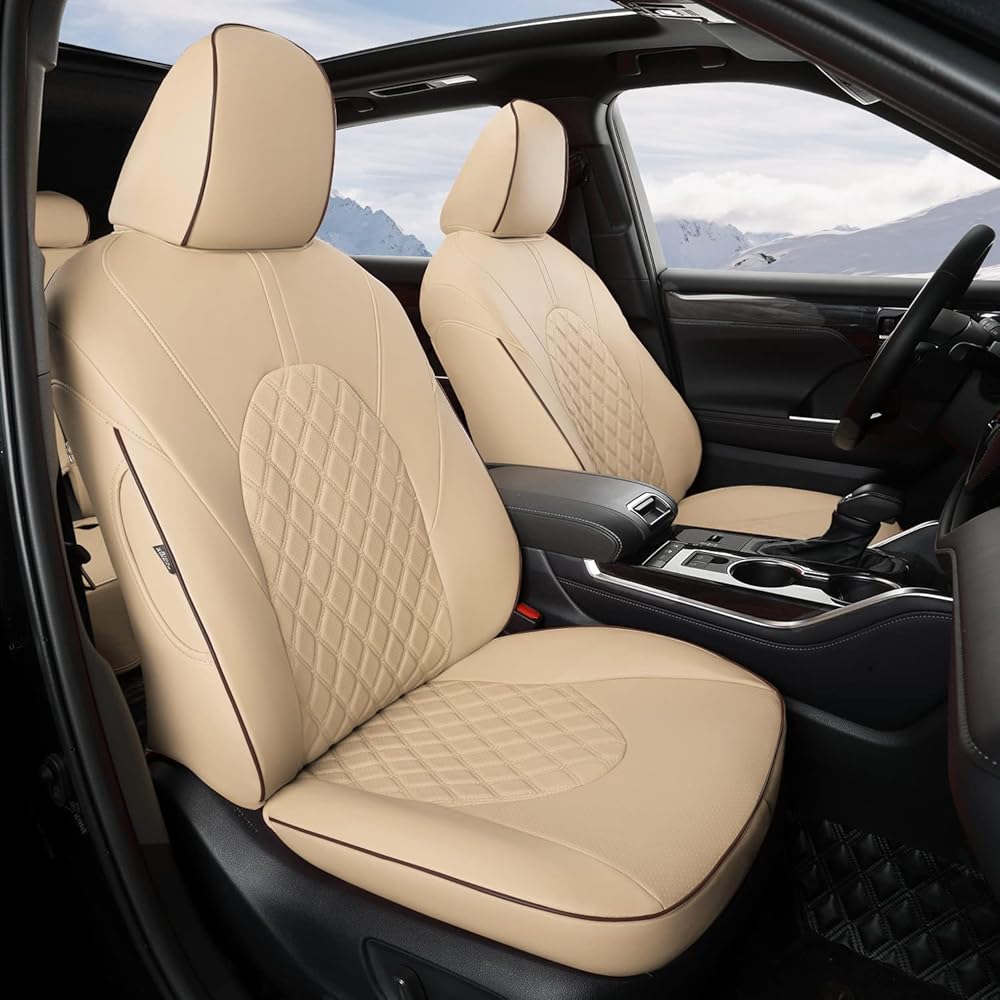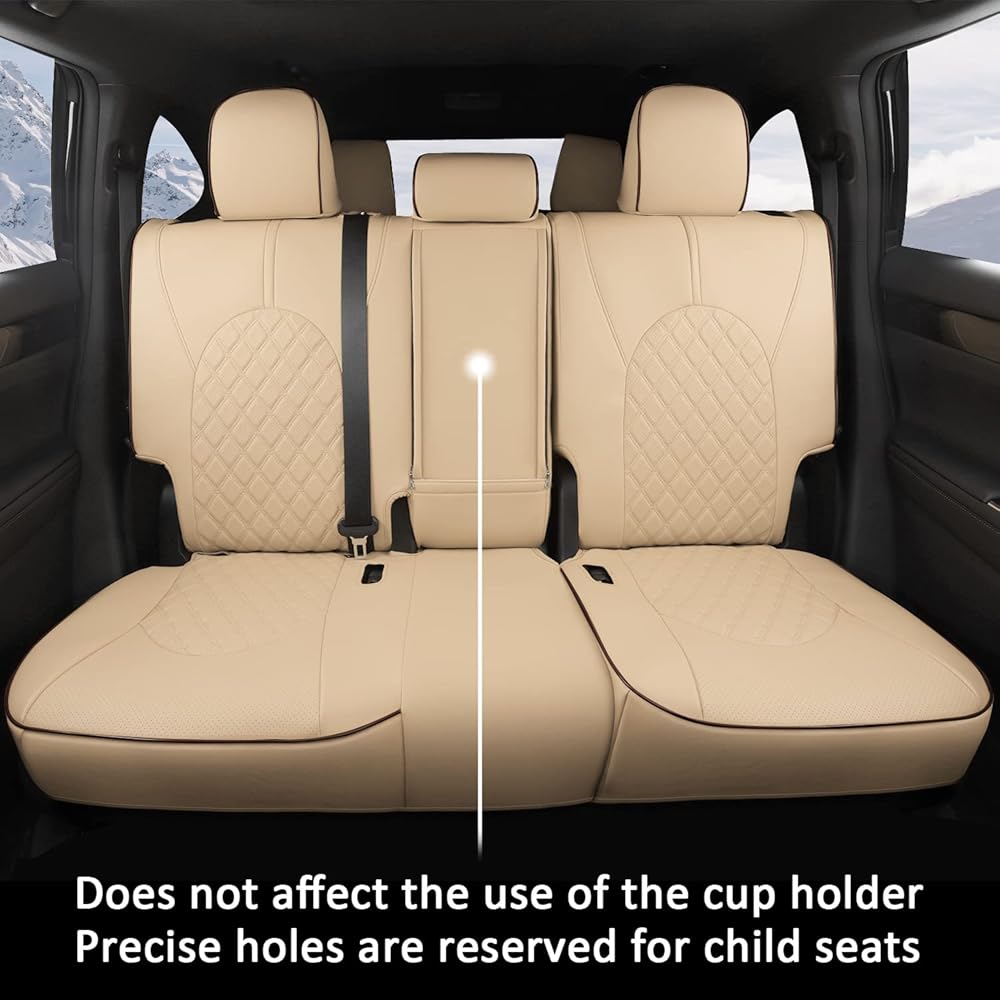 GIANT PANDA Customized Full Set Car Seat Covers Fit for Toyota Highlander L/LE/XLE/Limited/Hybrid 2020 2021 2022 2023 2024 2025 2026 Three-Row Model, 8 Seats, Faux Leather - (Beige)