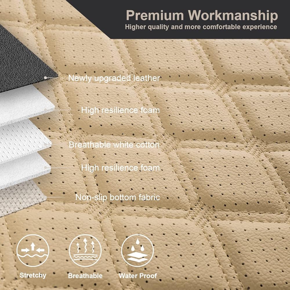 All of the front seat covers and the second row/third row bench seat cover show rich in stereoscopic vision with a diamond-shaped quilted design and stitching decoration, simple and stylish, and can be perfectly integrated with your car interior.