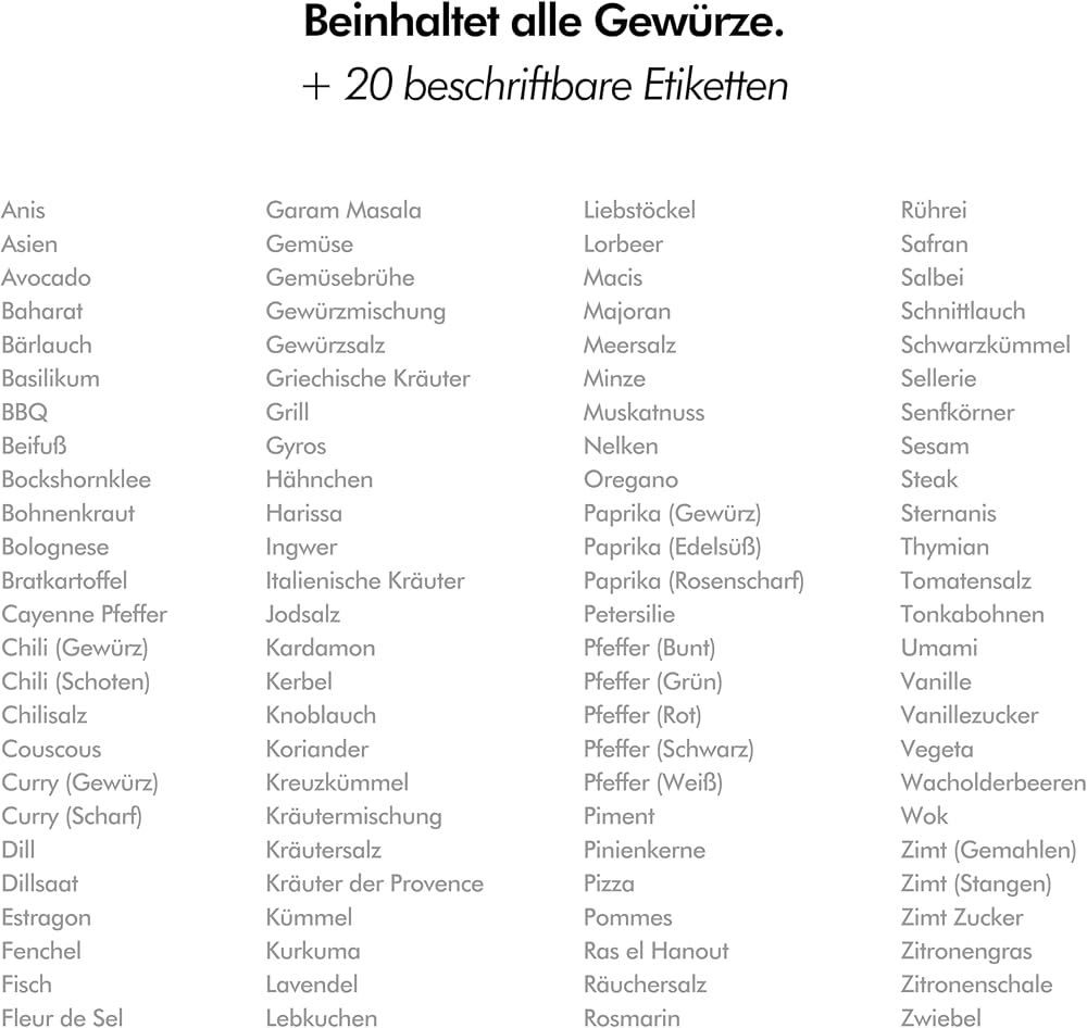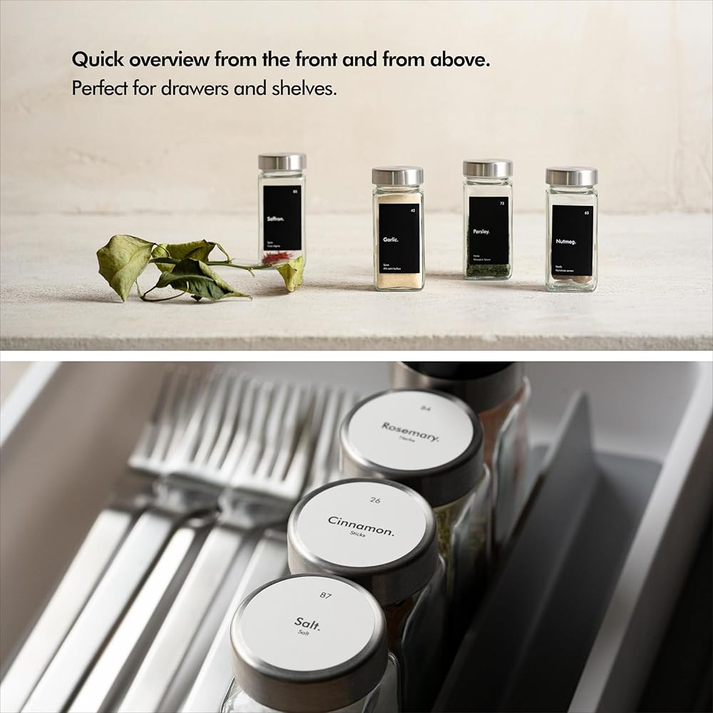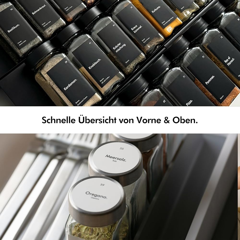 QUICK OVERVIEW - Thanks to the rectangular and round spice labels, you have a quick overview from above or from the front.