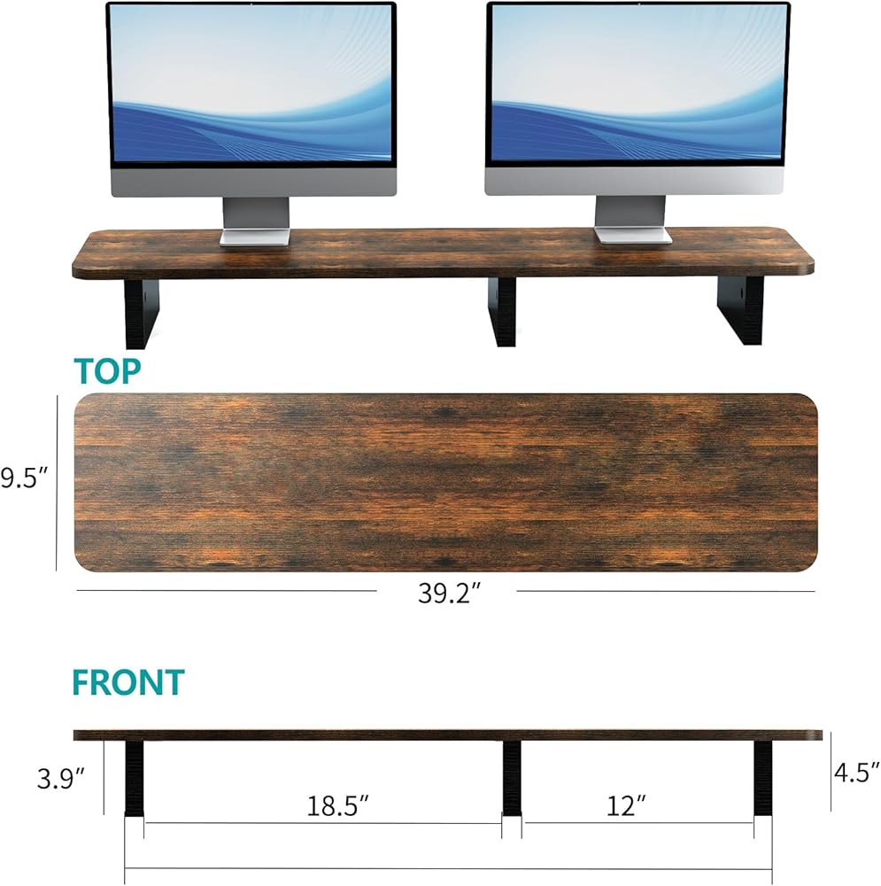 Product Size: The large wooden monitor stand is 39.2 "length x 9.5" width x 4.5"height (99.6 cm x 24 cm x 11.5 cm) and has a maximum weight capacity of 110 pounds (50 kg), making it ideal for when multiple computers need to work together.