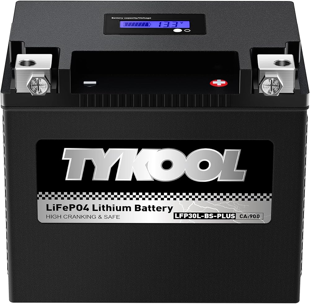 High Performance and Lightweight:Tykool Lithium Ion Powersports battery provide over 400-amps of starting power,over 4000 Charging Cycles. Compared to lead-acid battery, it's 2X more power,10X more starts,and 5X longer life.The lithium battery is only 2.43 pounds (1.1 kg).about 1/3 the weight of a lead-acid battery,but 3 -5 times the energy density.