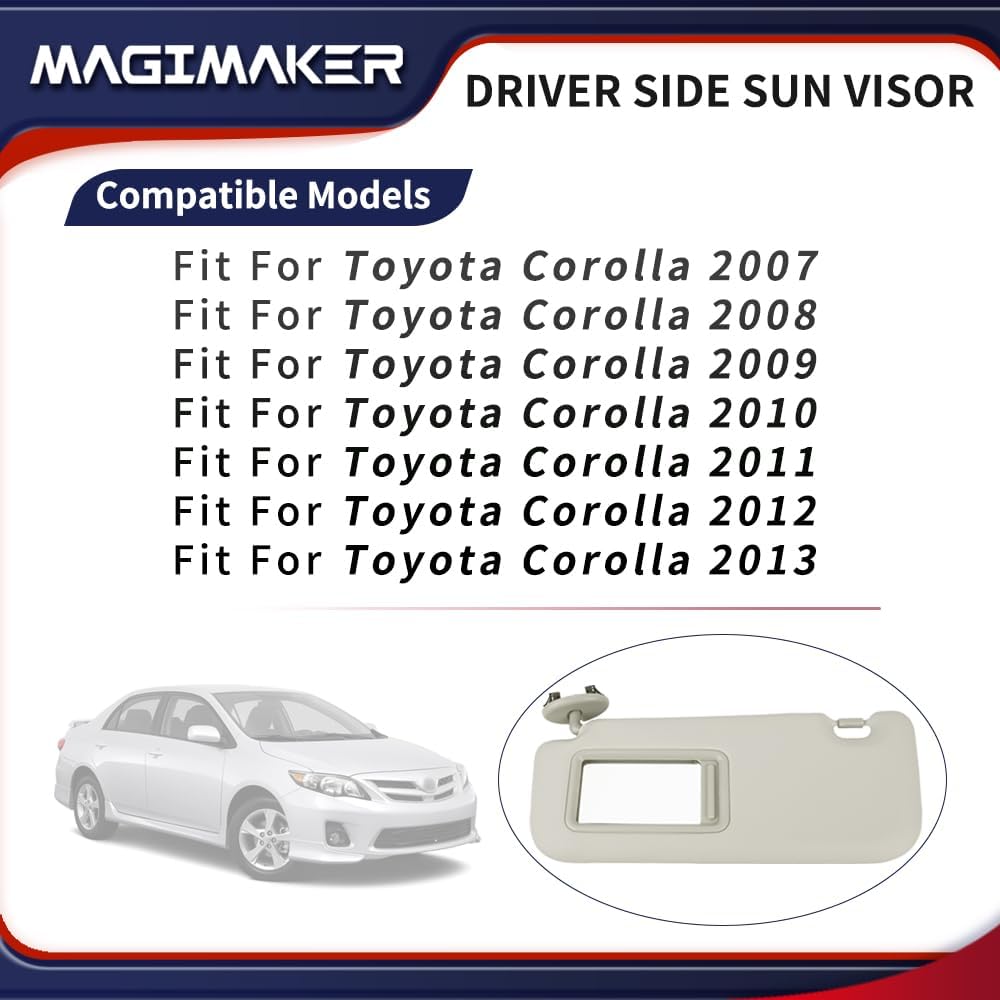 [Compatible With]: This Gray Left Driver Side Sun Visor is compatible with Toyota Corolla 2007 2008 2009 2010 2011 2012 2013.
