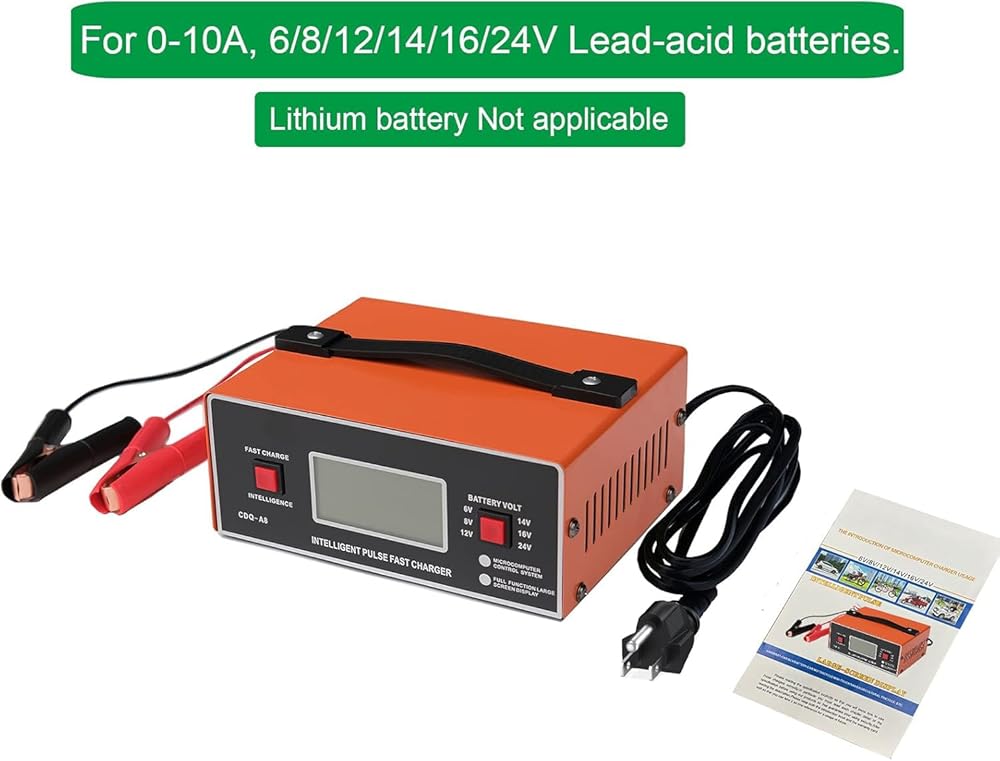 【FULLY AUTOMATIC CHARGING】-Ideal for charging or maintaining all types of 6/8/12/14/24V lead-acid batteries, including STD, AGM and Gel (Lithium battery not included). Built-in high-frequency pure copper wire transformer, high conversion rate. Automatically matches and selects the best 0-10A charging, and stops automatically when fully charged.
