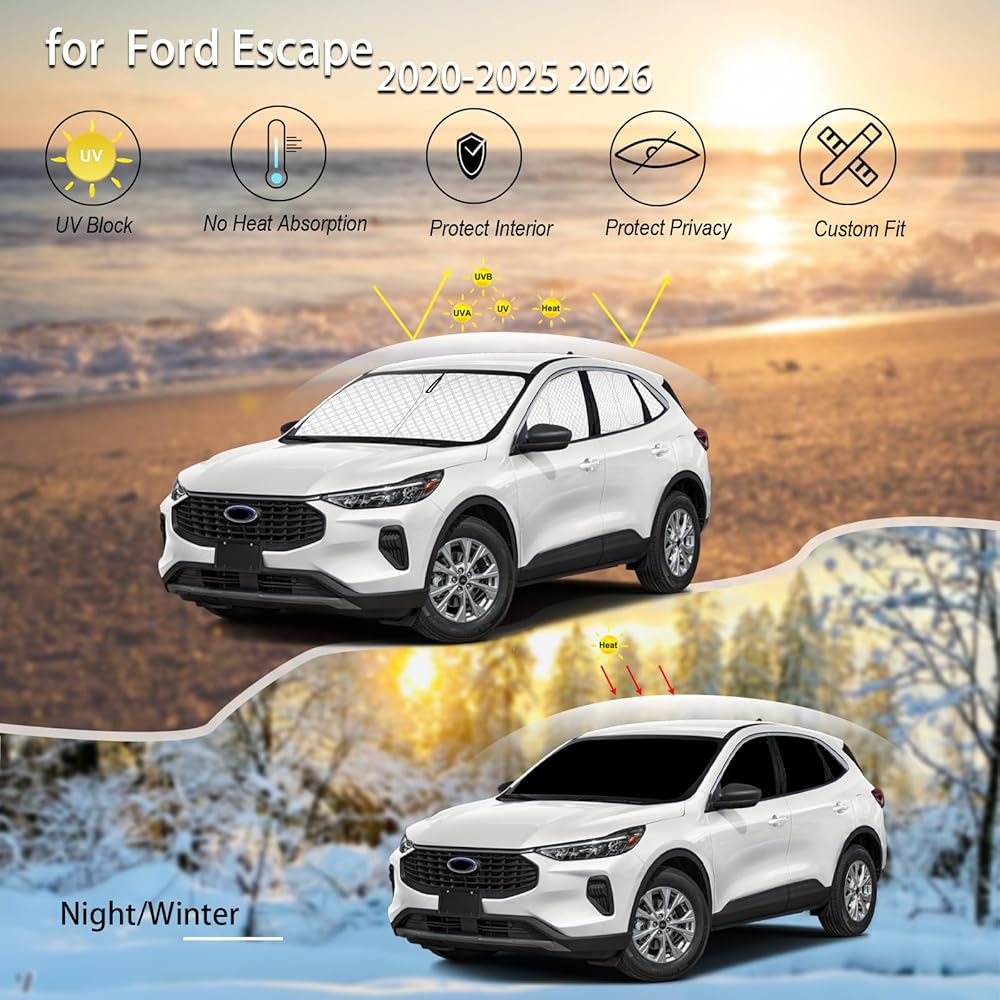 KMF Thicken Windshield Sun Shade for Ford Escape 2020-2026 Accessories, Foldable Custom Fit Full Car Window Shades for Protector Block UV Rays and Light Blocking Camping