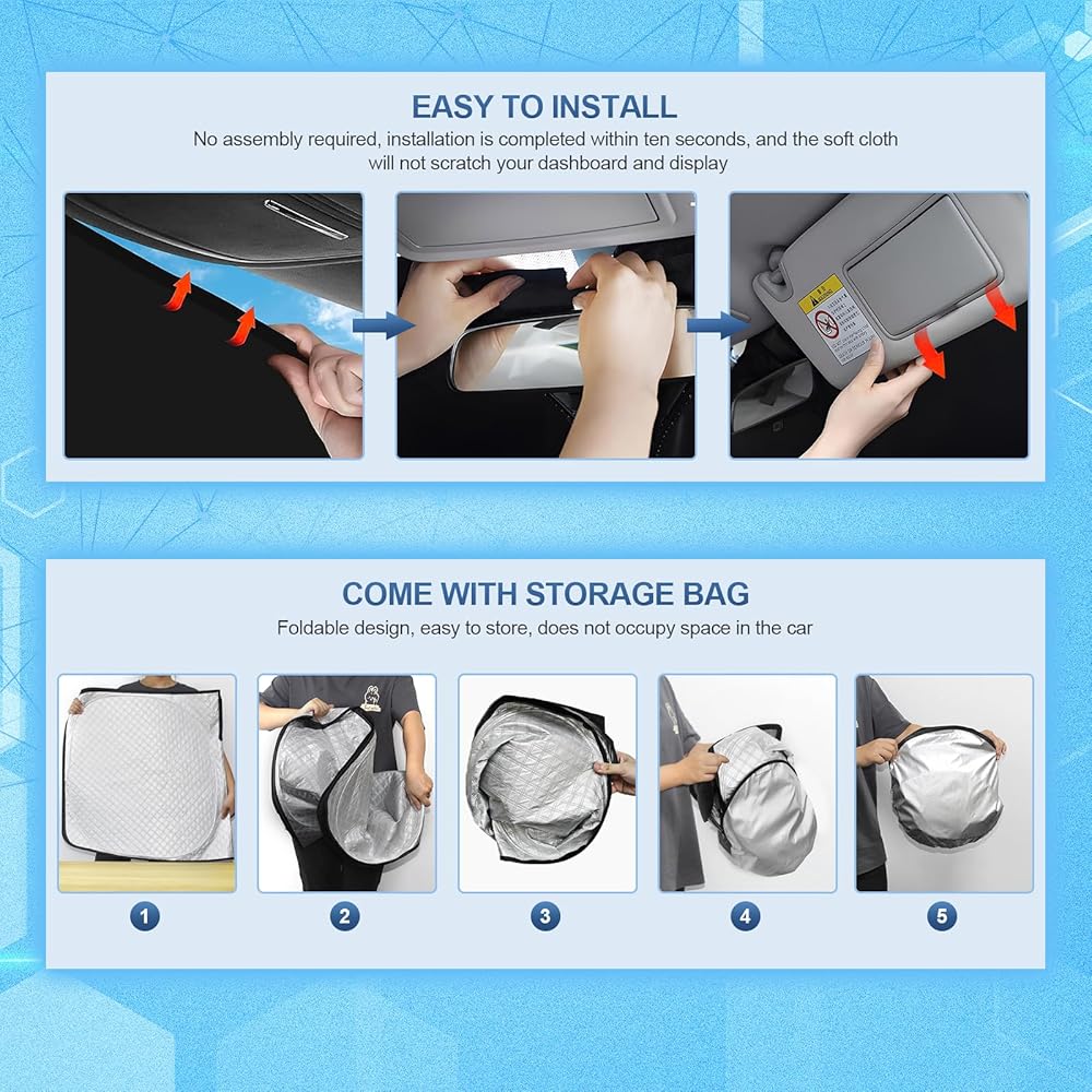 4-Layer Thickened Car Sunshade: 2024 newly upgraded diamond pattern thickened insulation cotton. In addition to the 240T reflective polyester on the surface, which can effectively block 99.9% of uv and sunlight, the high-quality cotton layer is also added in the middle, which can reflect and absorb heat to ensure high-quality thermal insulation. Maximum durability and sturdiness at the same time