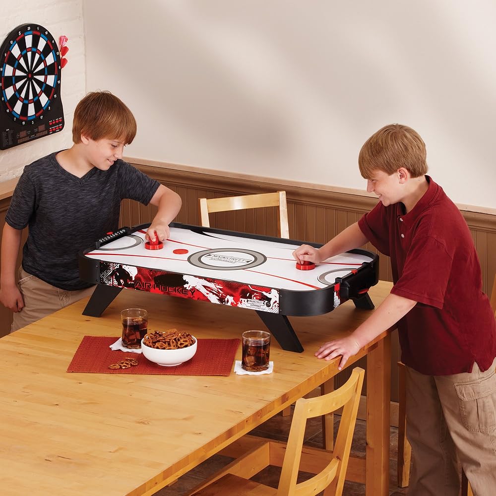 All the fun of air hockey, without taking up the majority of a game room with an expensive table