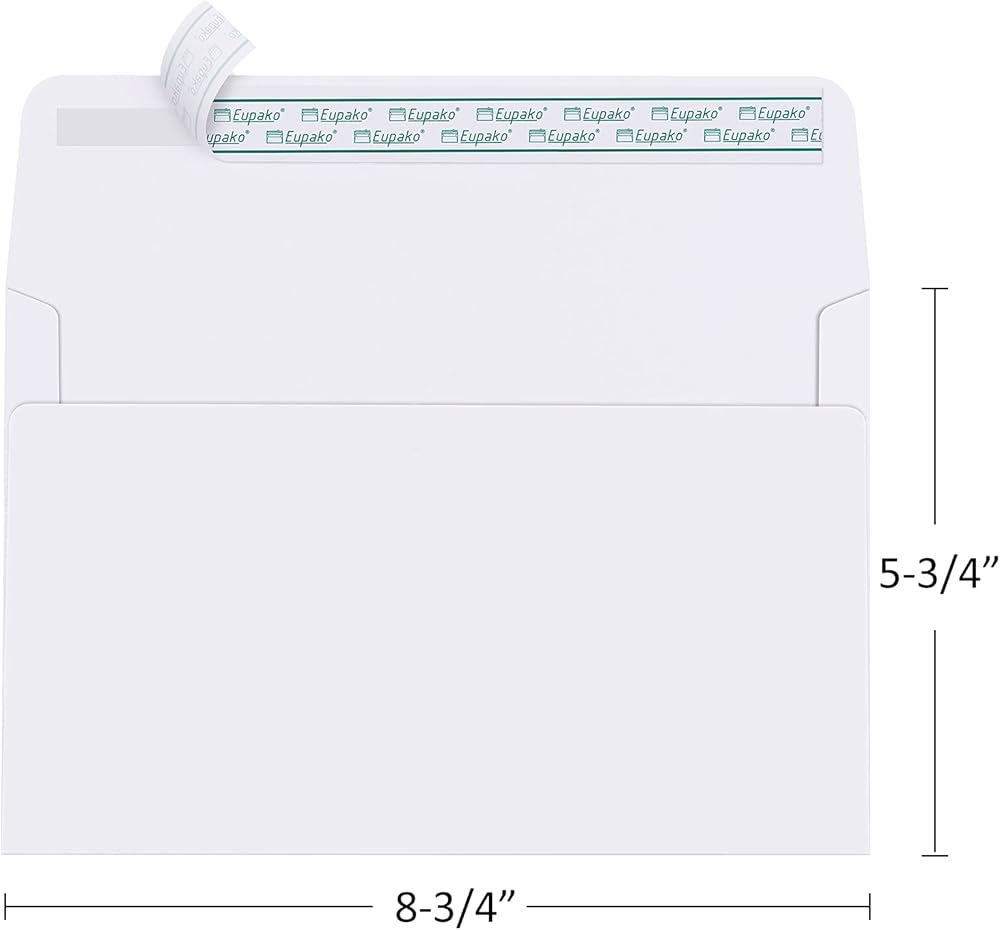 Self-sealing Flap: The white envelopes is easy to use. Just peeling off the strip and sealing the flap to get an effortless mailing, no need to lick or moisten. Also, the adhesion of flap on thank you envelopes is quite strong, secure and lasting, keeping contents from falling out when transiting.