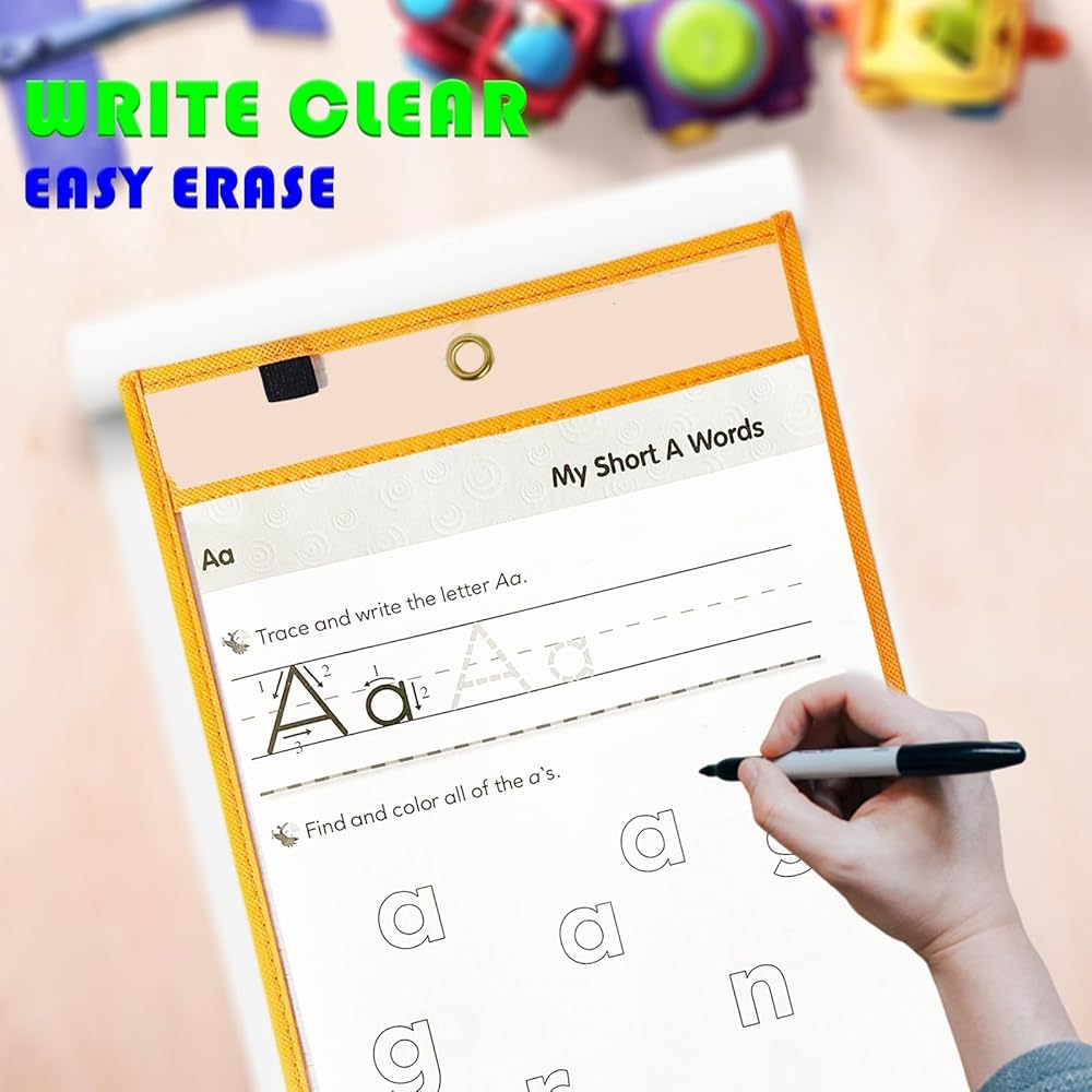 Reduce waste: Our dry erase pocket sleeve is a great way to have students utilize paper worksheets again and again without wasting paper. It can save your time and money. It is perfect for classrooms, restaurants, offices, art centers, homeschool, and more.