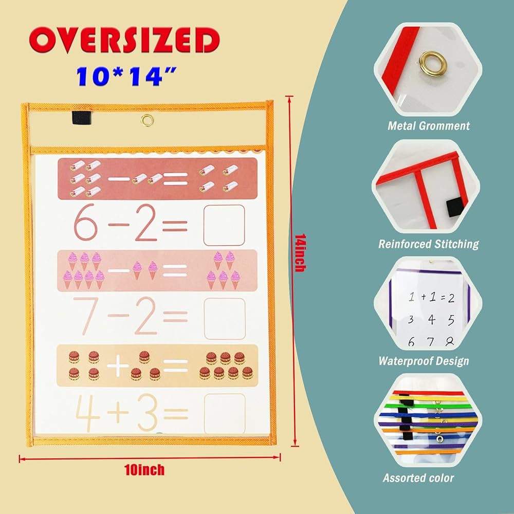 Wide application: Our dry erase pockets measure 10 x 13 inches, which makes them perfect for storing most sizes of paper or student activity sheets.