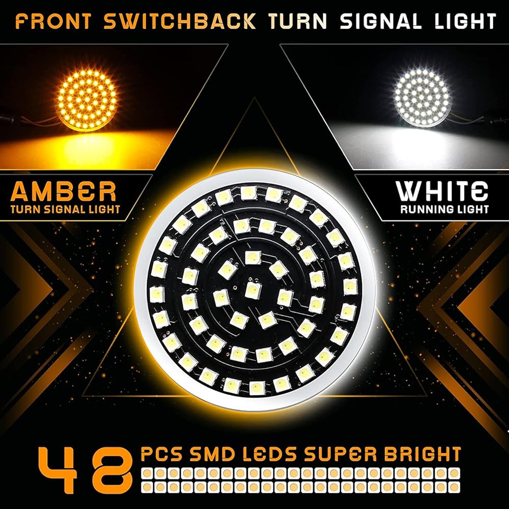 ➤ Switchback Design: Front dual contact 1157 blinkers available in two color, full led illuminates white for the running light and switches to amber when the turn signal is activated. Rear 1156 lights only available in red, only function as turn signal light