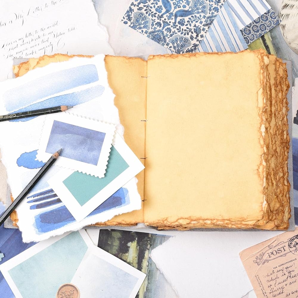 WATERCOLOR PAPER - Tree-free and environmentally friendly Handmade deckled edges virgin paper made from cotton waste which gives you Unique and rustic deckled edges add a touch of elegance to your projects because Each sheet is meticulously crafted by skilled artisans. Each sheet has a thickness of 150 (GSM), which makes it suitable for use with any dry or wet medium and any type of pen or marker, without any blotting.