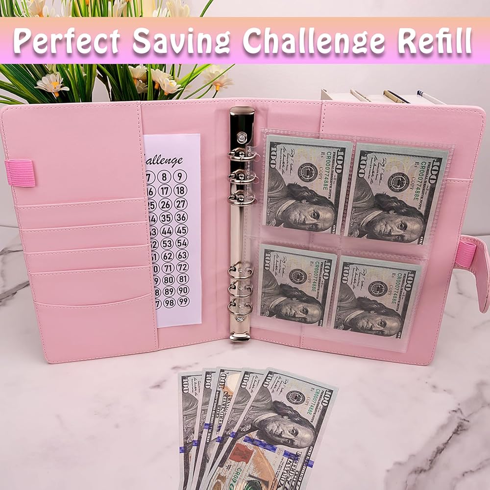 A5 6-Ring Binder Compatibility: Designed to seamlessly integrate with standard A5 6-ring binders, these sheets offer endless possibilities for organization. Measuring 6.1 x 7.6 inch and equipped with 2.6 x 3.6 inch pockets, they're adaptable for a money saving challenge refill