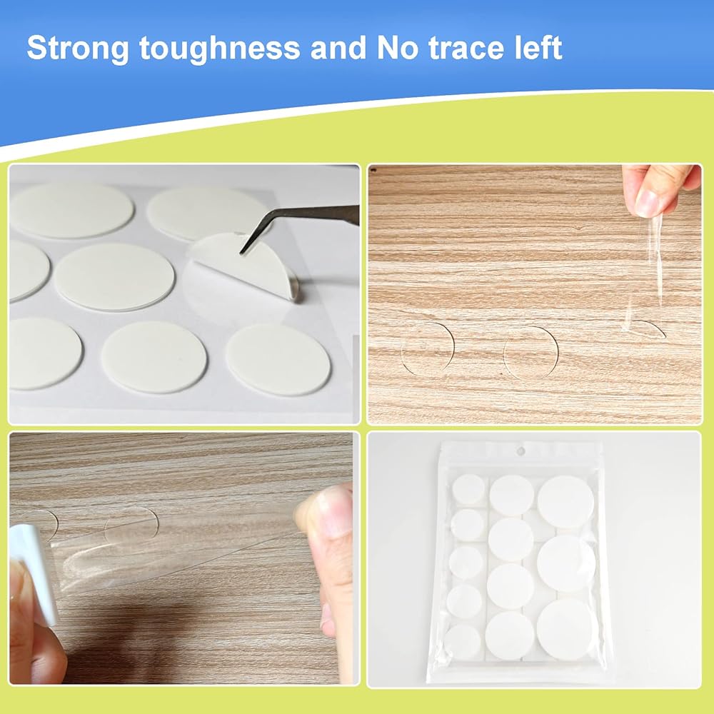 No Trace Left -- This adhesive dots are suitable for smooth and flat surfaces such as plastic, glass, metal, fabric, wood, ceramic tiles. Double-sided tape leaves no residue, easy to remove, removable, cleanable without damaging the surface.