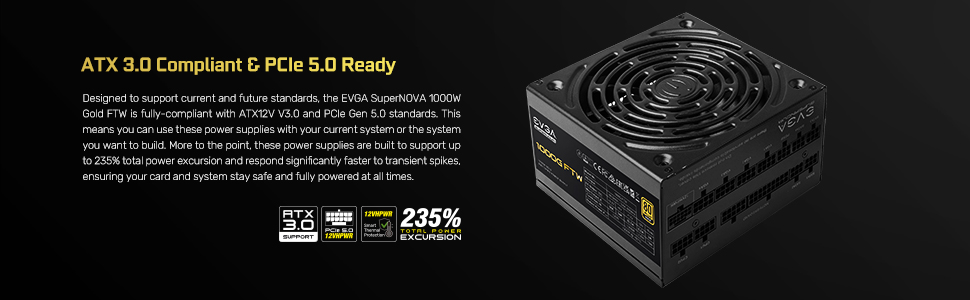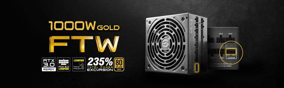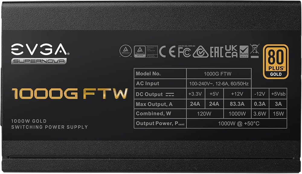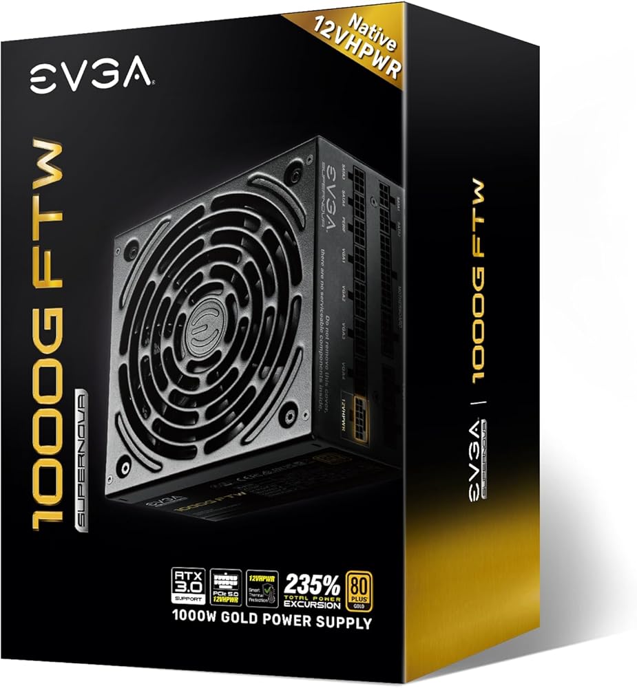 EVGA SuperNOVA 1000G FTW, 80 Plus Gold 1000W, Fully Modular, 3 Year Warranty, Includes Power ON Self Tester, Compact 150mm Size, Power Supply 535-5G-1000-K1