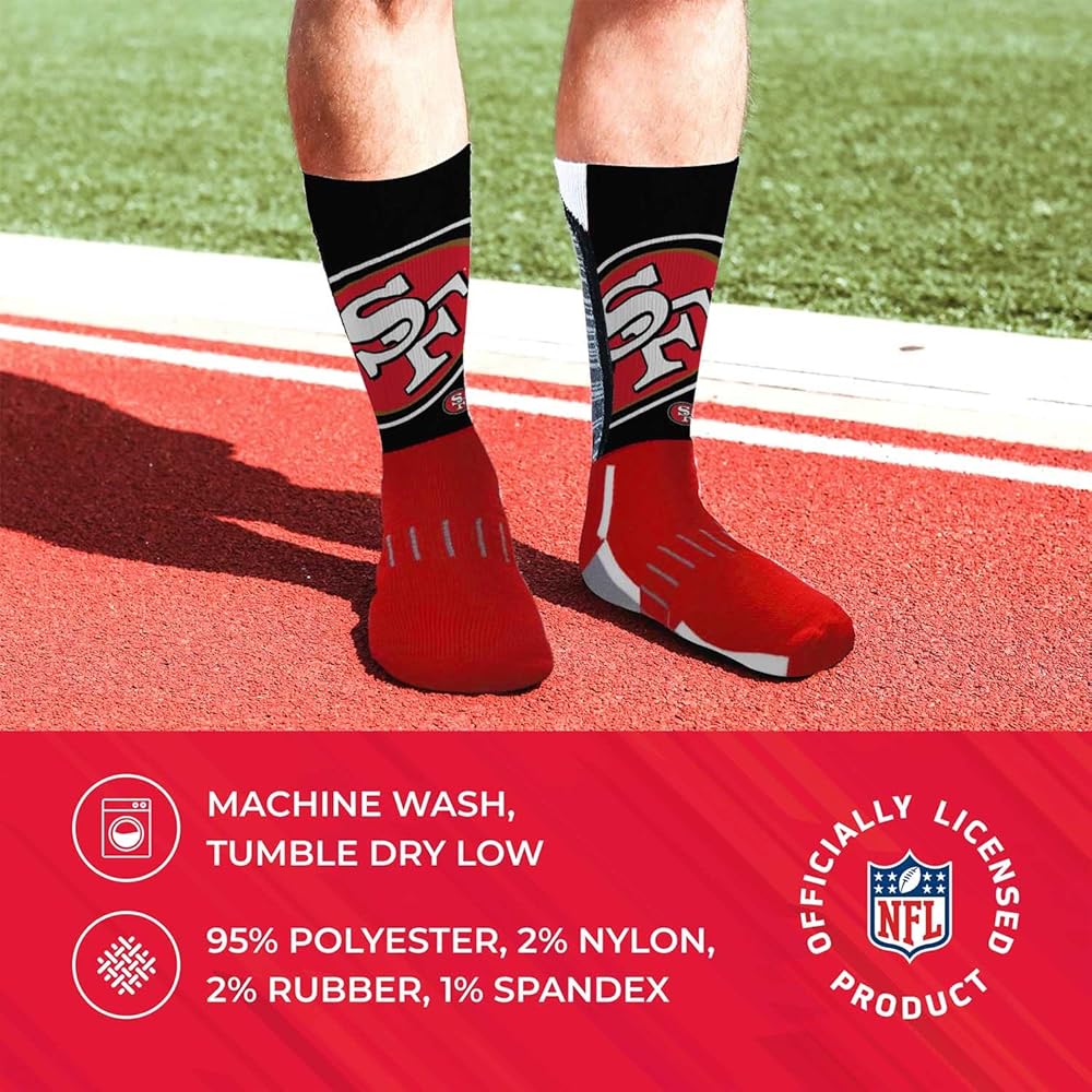 These Minnesota socks with woven graphic of team logo are the perfect super fan apparel for tailgates and games, especially paired with Minnesota Vikings shoes and other gear; the crew length and fabric blend make them a comfortable choice for warm and cold weather
